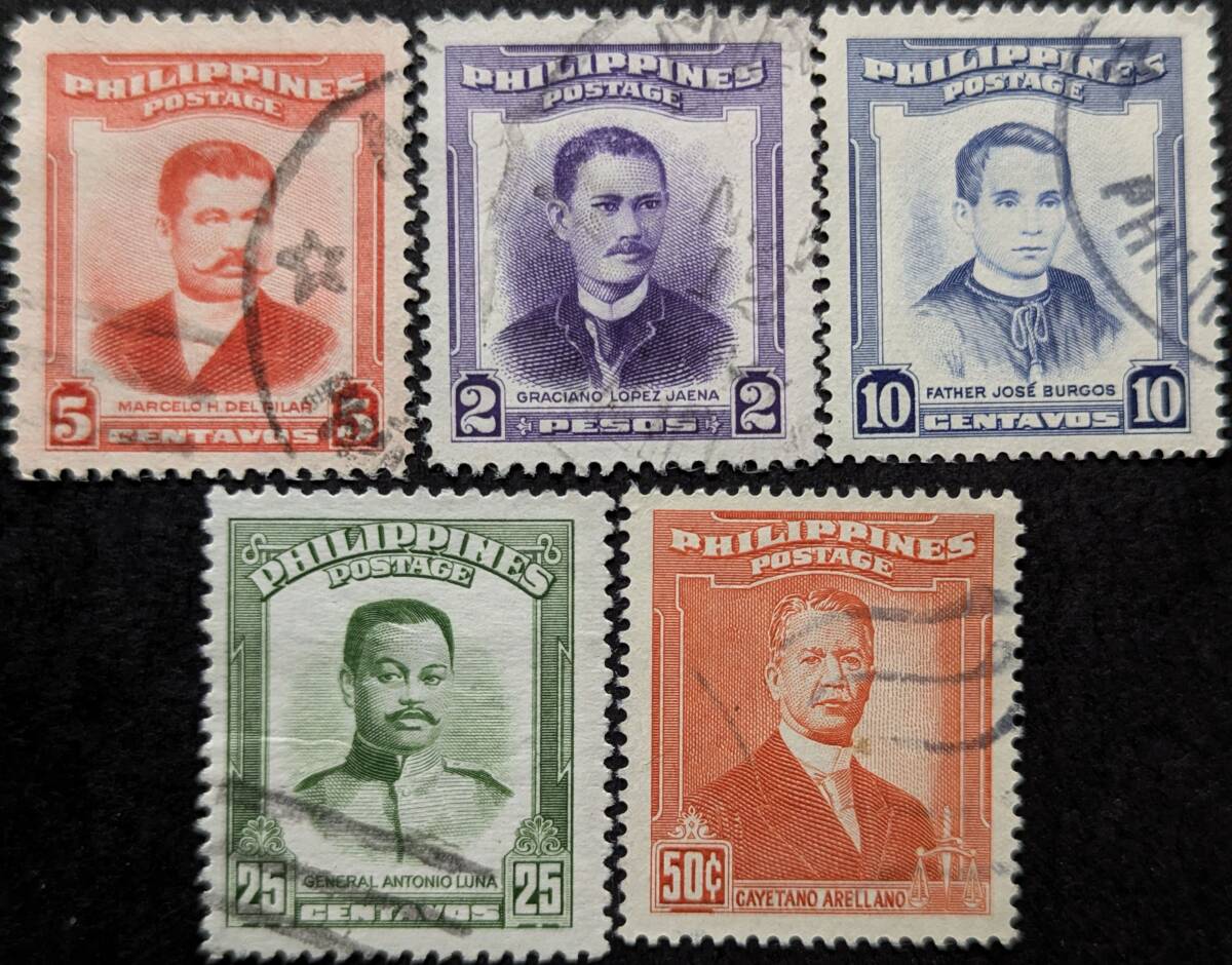 【外国切手】 フィリピン 1952年 発行 人格 マルセロ・H・デル・ピラール グラシアーノ・ロペス・ハエナ ホセ・ブルゴス神父... 消印付き