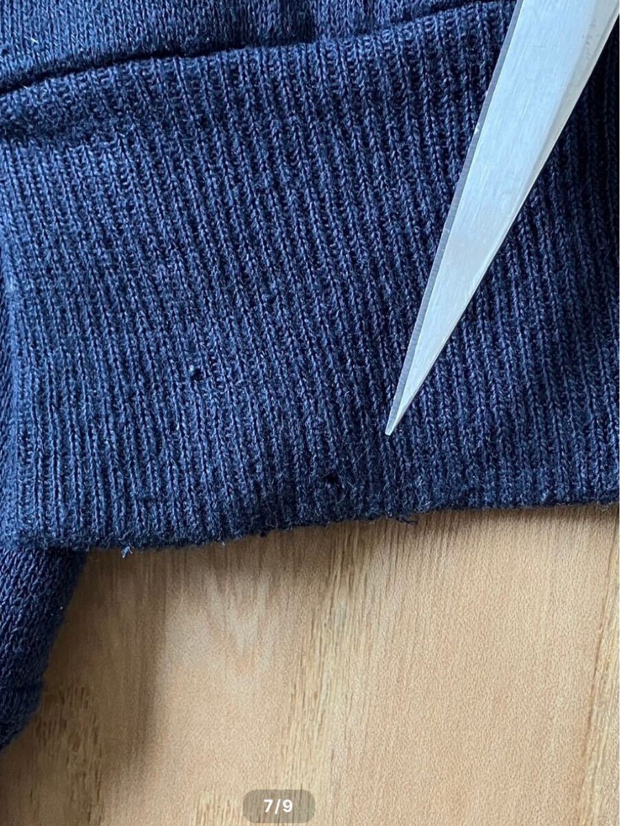 ★胸付近、左袖、付近に若干の汚れ、左袖先リブピンホール