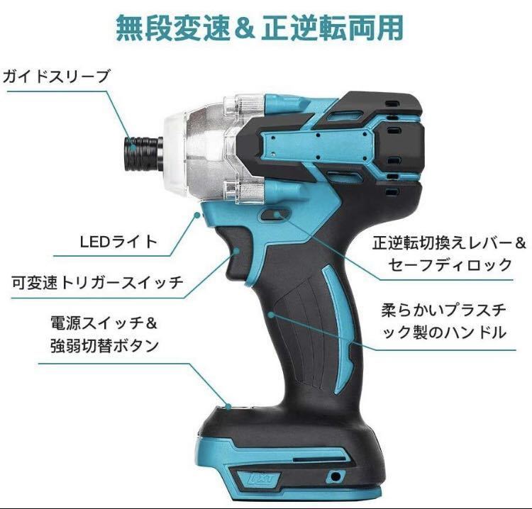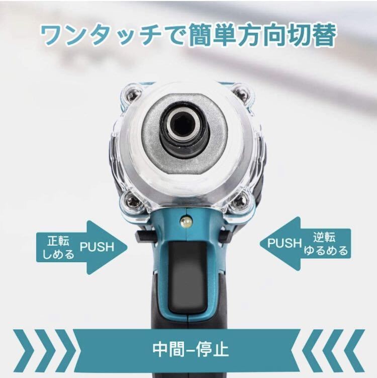 「回転+打撃」でパワフルインパクト機構、LEDライト付き、無段変速インパクトドライバです。正逆転レバーの位置を調整することで、ビットの回転方向を切り替えでき、ネジを締め付けるだけでなく、ネジを緩めることも可能です。