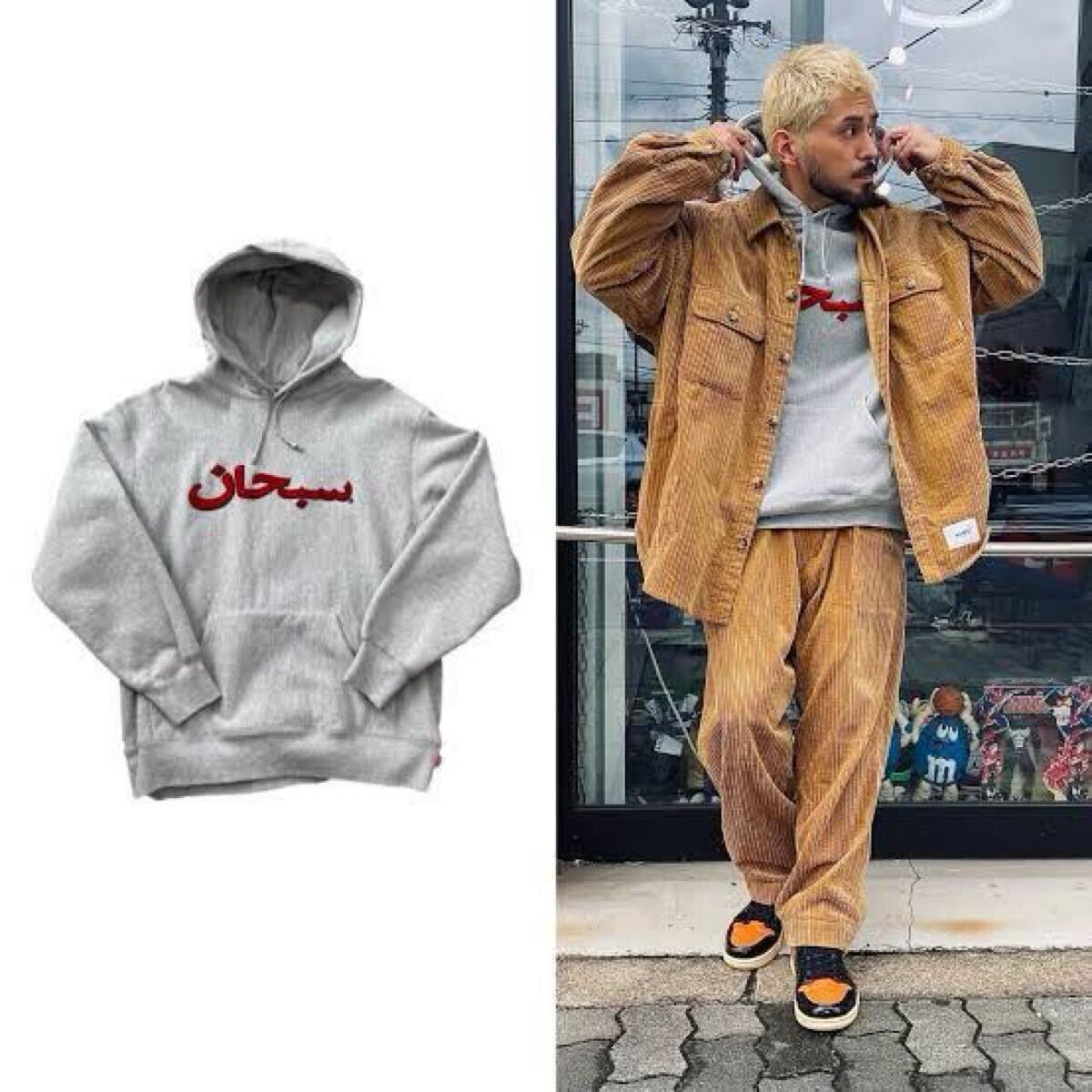 21FW Supreme Arabic Logo Hooded Sweatshirt Heather Grey