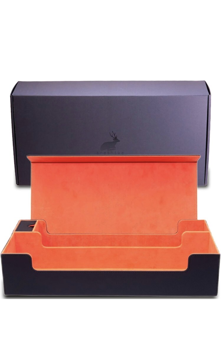 外箱も収納に使える】アレシカ(areshika) TCGフォートレス トレカケース レザー マグネット デッキケース カードケース (ブラックオレンジ)