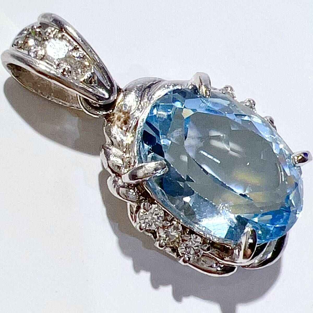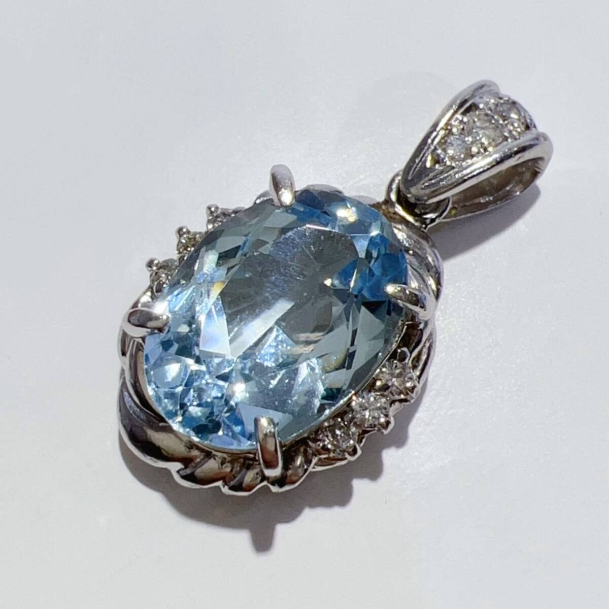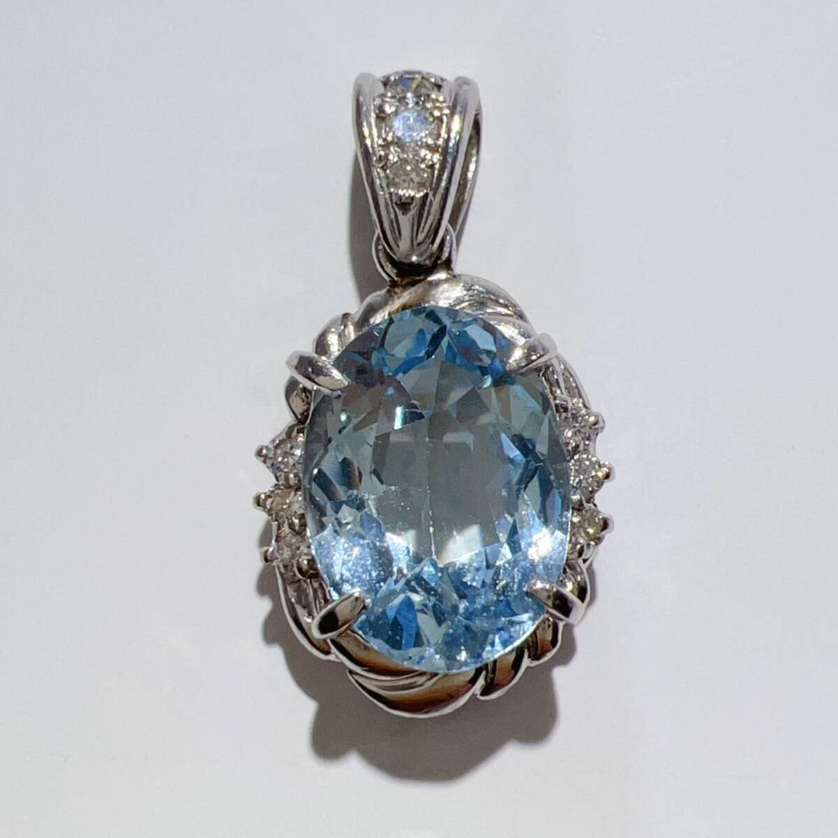 商品名:PT900 天然 アクアマリン ダイヤ ネックレス ペンダントトップ