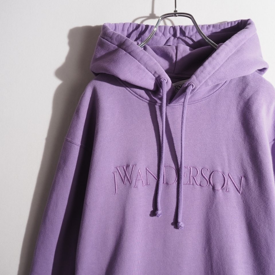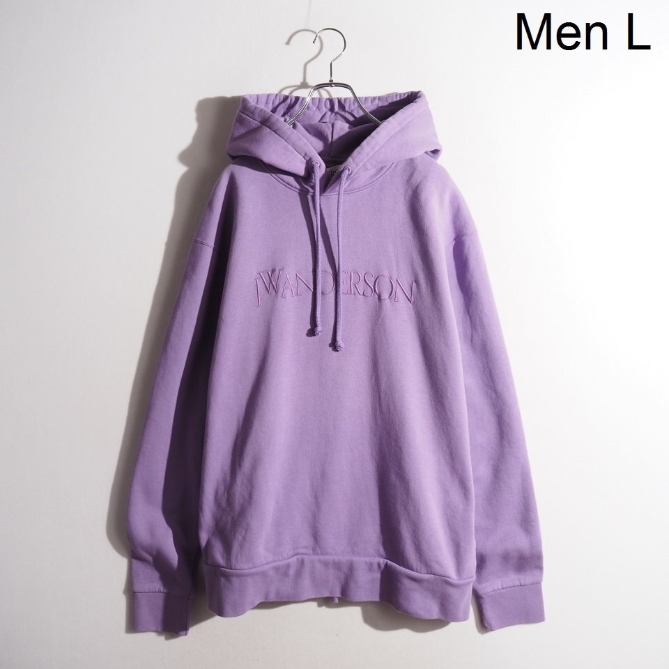 P8986P ▼J.W.ANDERSON アンダーソン▼ ロゴ刺繍 裏起毛 スウェットパーカー パープル L オーバーサイズ メンズ JW 秋~春先 rb mks