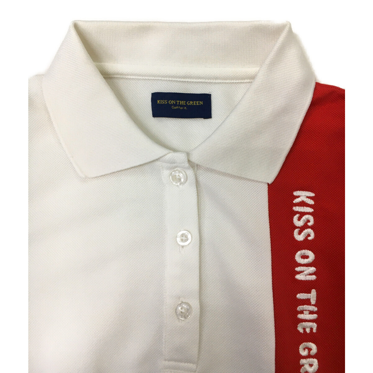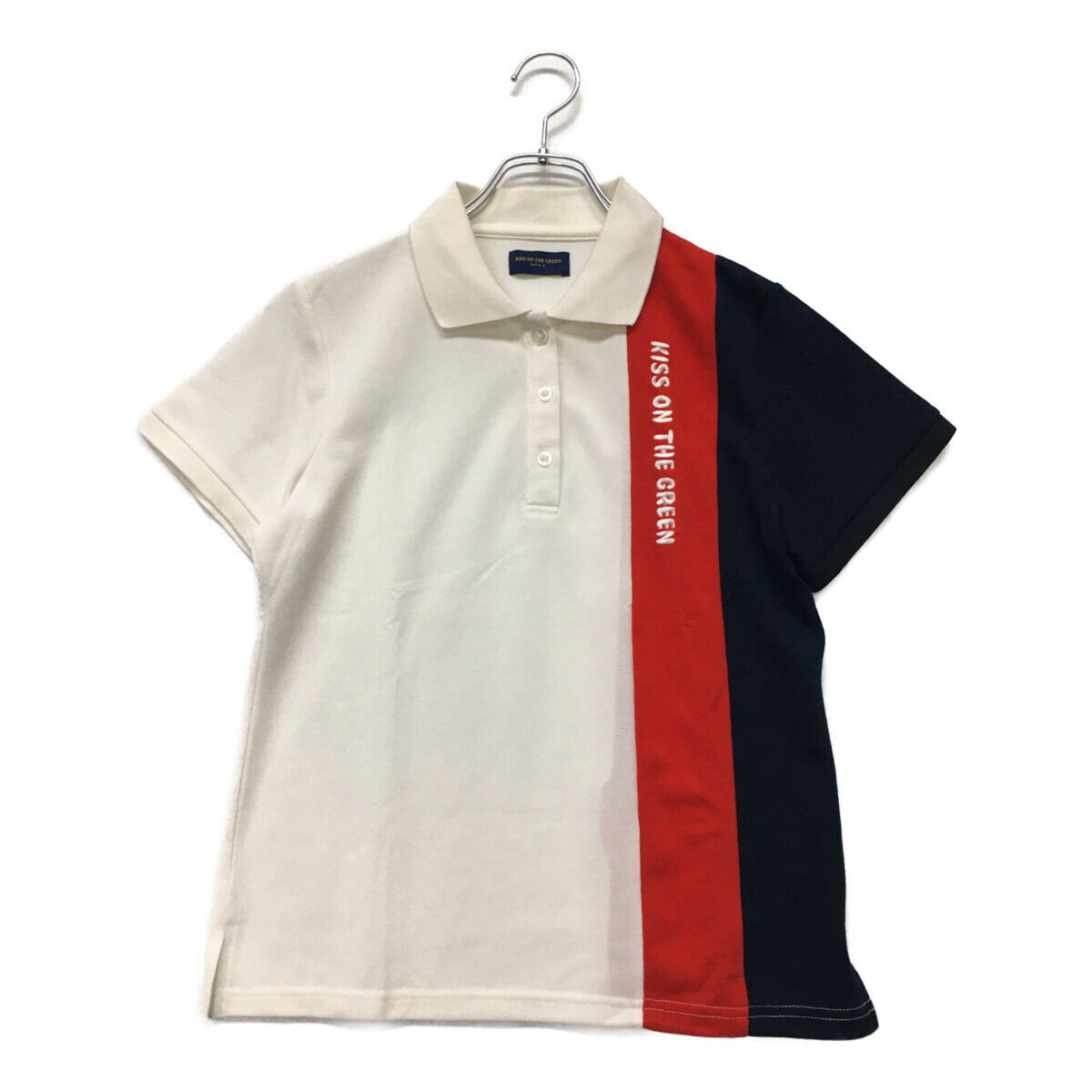 coco 中古【値下げ】 キスオンザグリーン レディース 半袖ポロシャツ 3(L) 白×赤×紺 トリコロールカラー ネコパケ発送可 95262