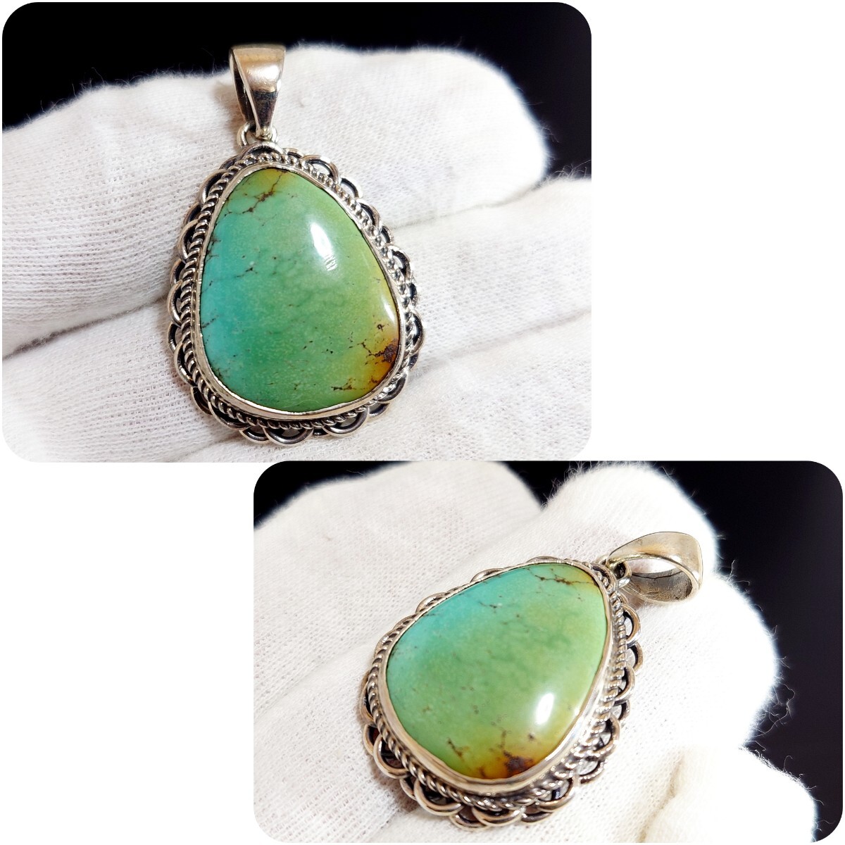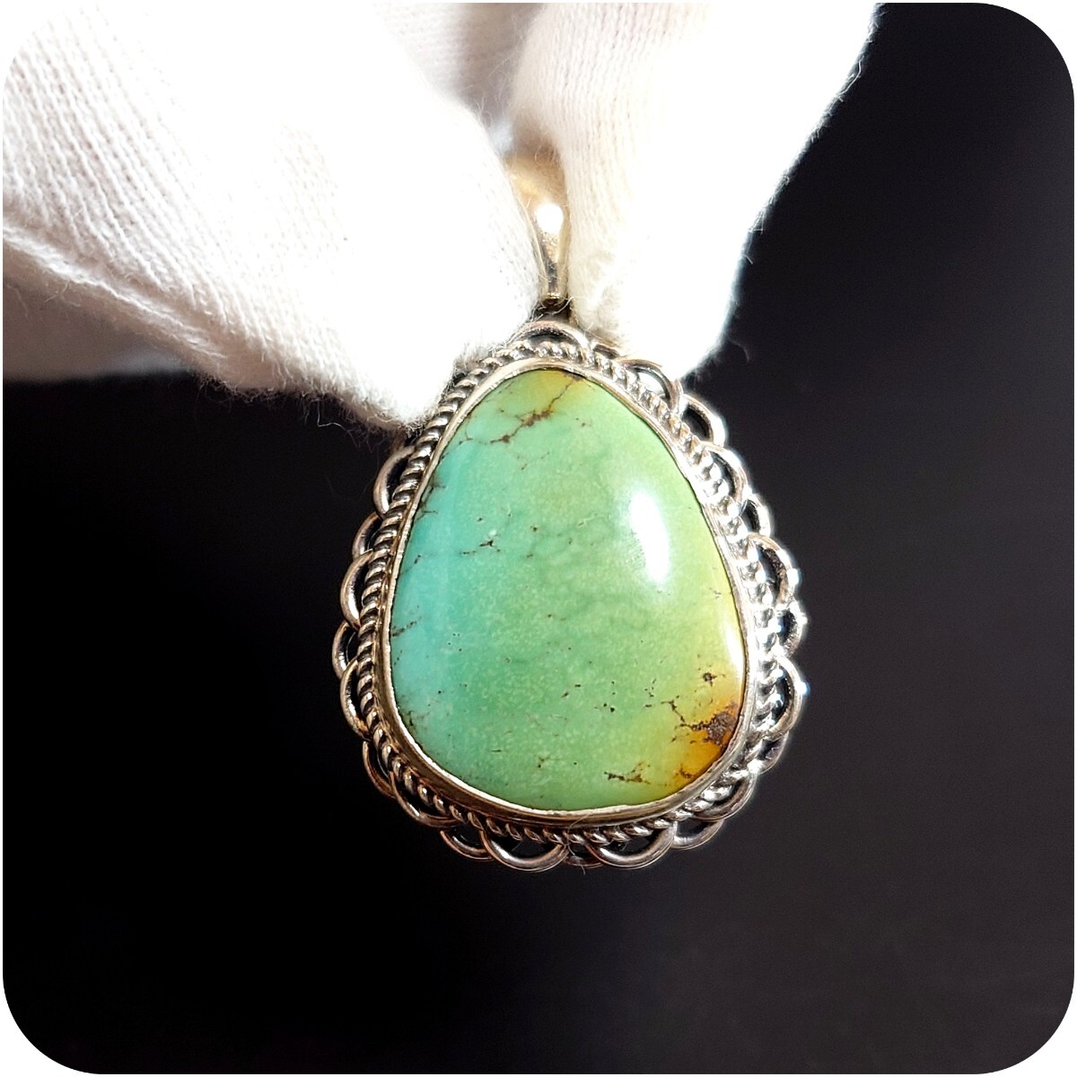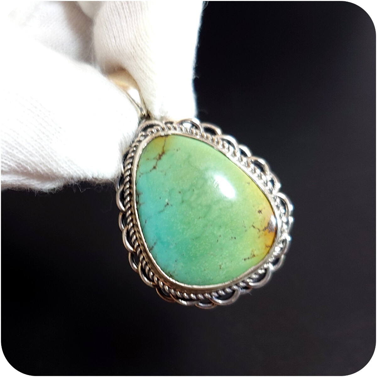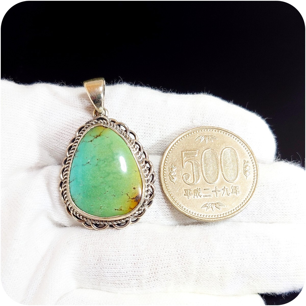 こちらのターコイズは落ち着いた色味のグリーン系で単色ではなく茶系のマトリックスが混じり合う表情豊かなレアストーンです☆