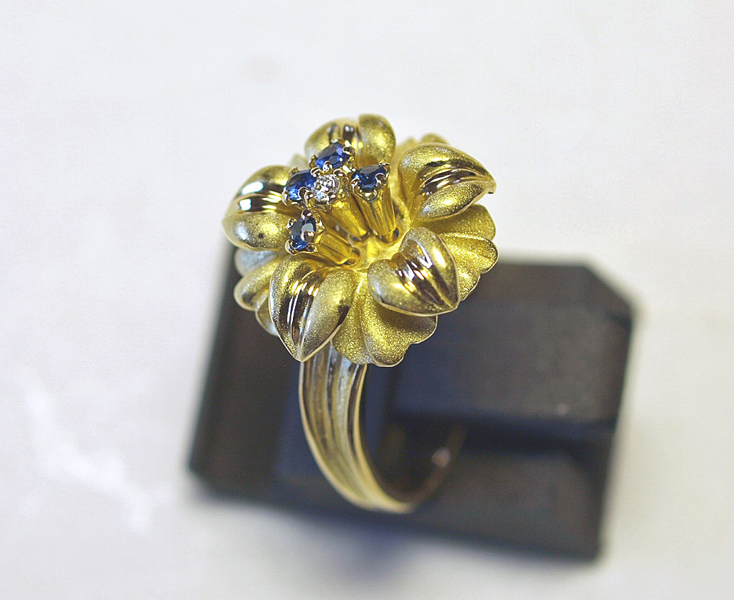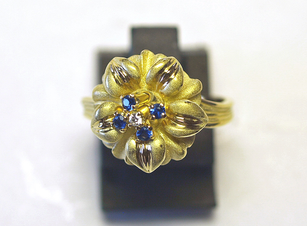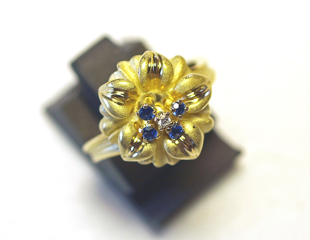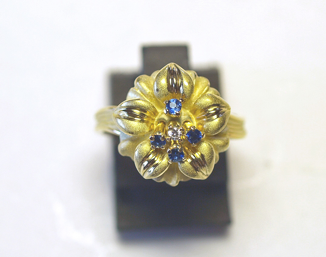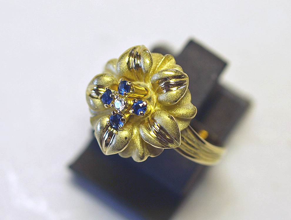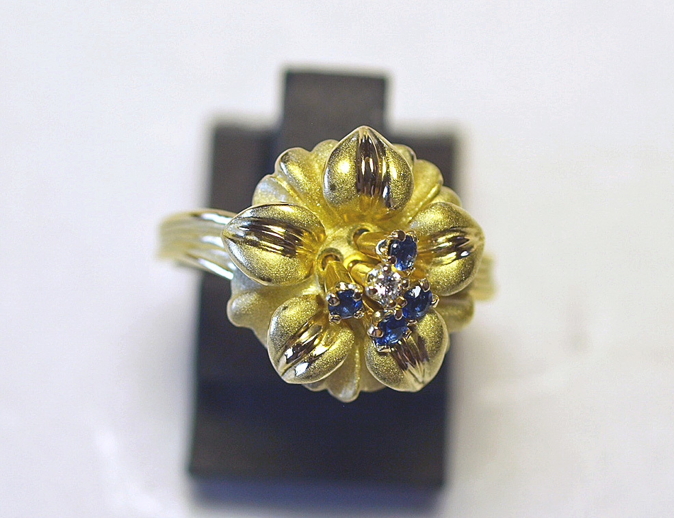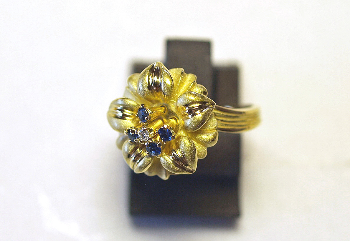 K18YGイエローゴールドアネモネのお花スウェーリングになります。