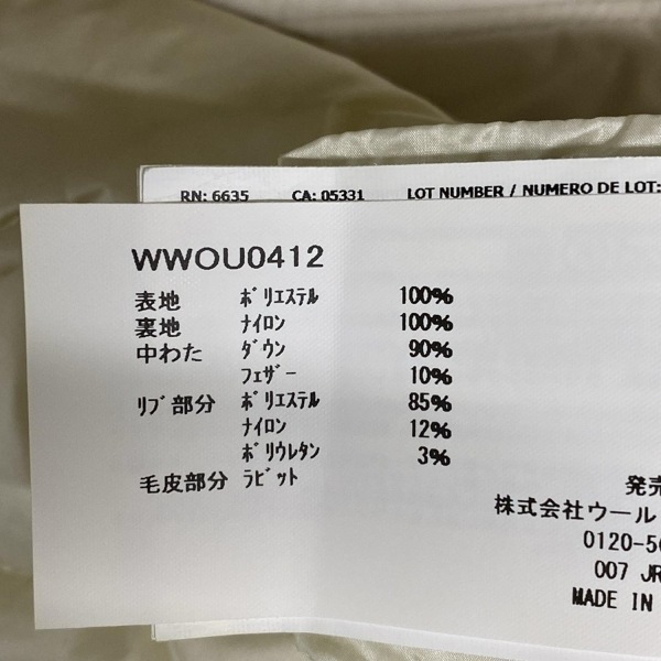 ウールリッチ WOOLRICH ダウンコート サイズS WWOU0412 - アイボリー レディース 長袖/ジップアップ/冬 コート