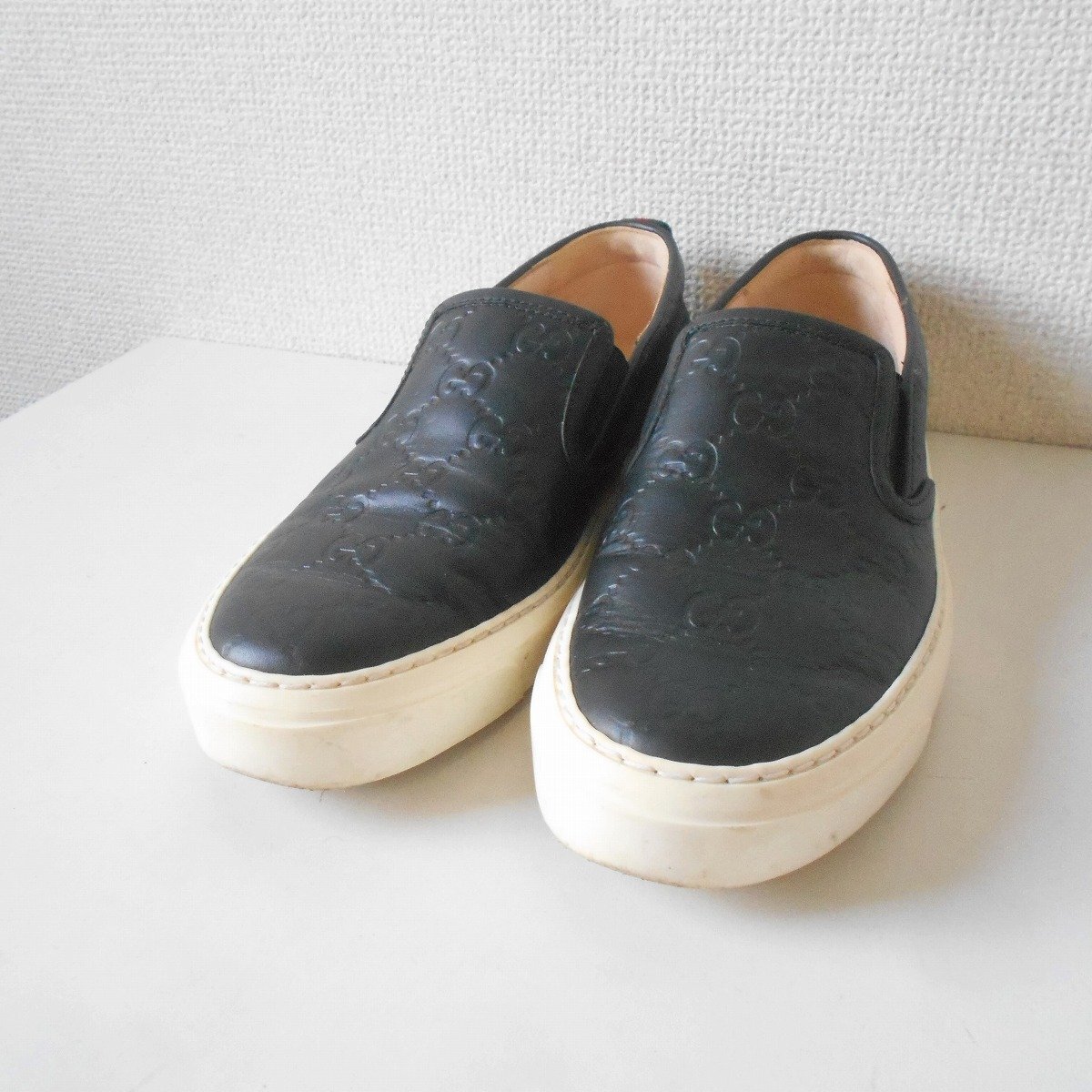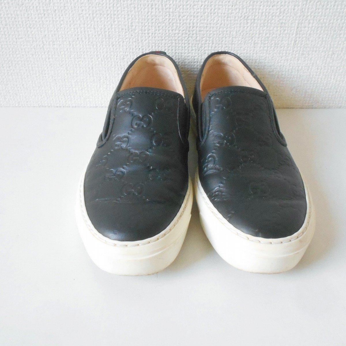 GUCCI グッチ レザー スリッポン シューズ 35 レディース 黒 スニーカー