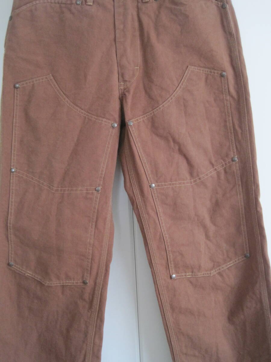 DALEE'S&Co ダリーズ モモ2重生地 ワークパンツ ダック生地になります。特に目立つ傷、汚れはありません。生地は厚手で、ダック生地のような感じです。カラーはレンガ色、サイズは不明、綿100%、日本製です。ウエストは38cm、股下74cm、モモ幅29.5cm(股下10cmで)、スソ幅22.5cmです。素人の採寸ですので若干の誤差、商品状態はご了承ください。 落札後は、ノークレーム、ノーリターン、ノーキャンセルでお願いします。 発送方法はレターパックです。ほかにも色々出品していますので良かったらご覧ください。
