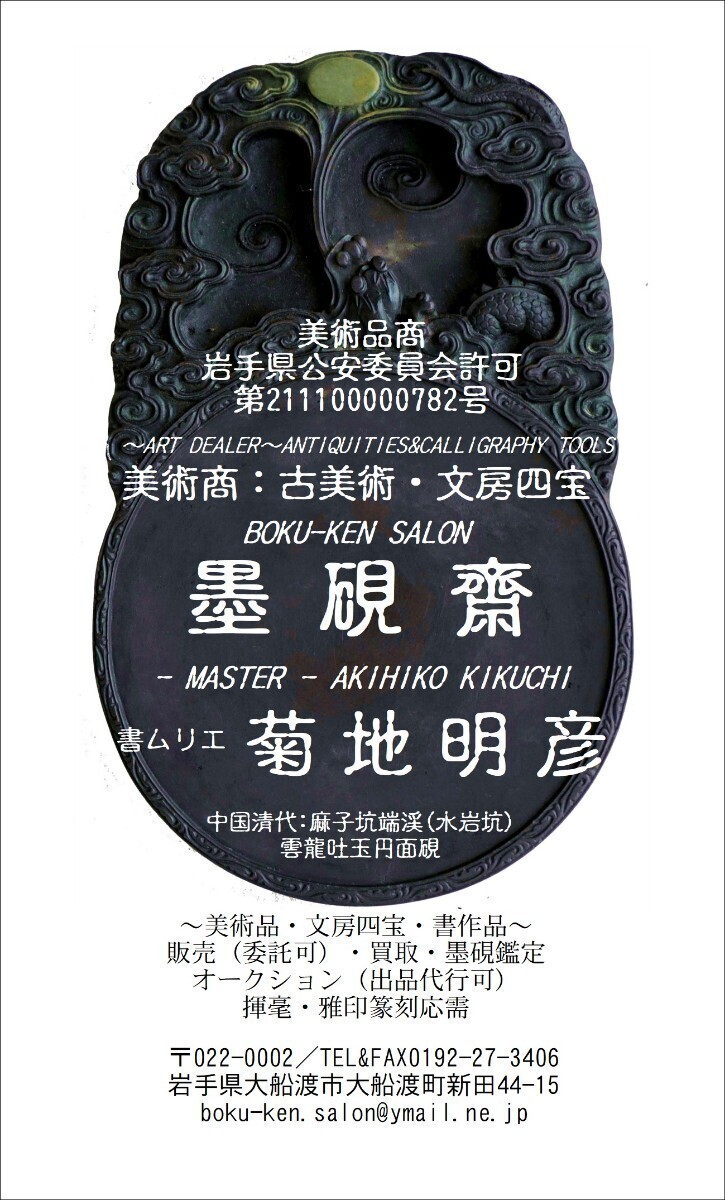 出品者は、文物骨董、特に墨硯への造詣と、研究・発表の実績が認められ、岩手県公安委員会より美術品商として許可を受けておりますので、ご信頼・ご安心の上、お取引をお願い致します。詳細は自己紹介欄と各出品物の最後の写真(特定商取引法による表示)をご