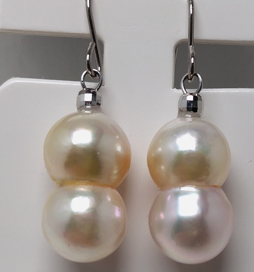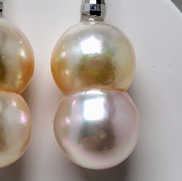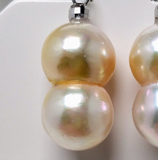 真珠専科 色テリ巻き最高 あこや真珠 大珠 15.8㎜×9.0㎜ ぶら下がり ピアス