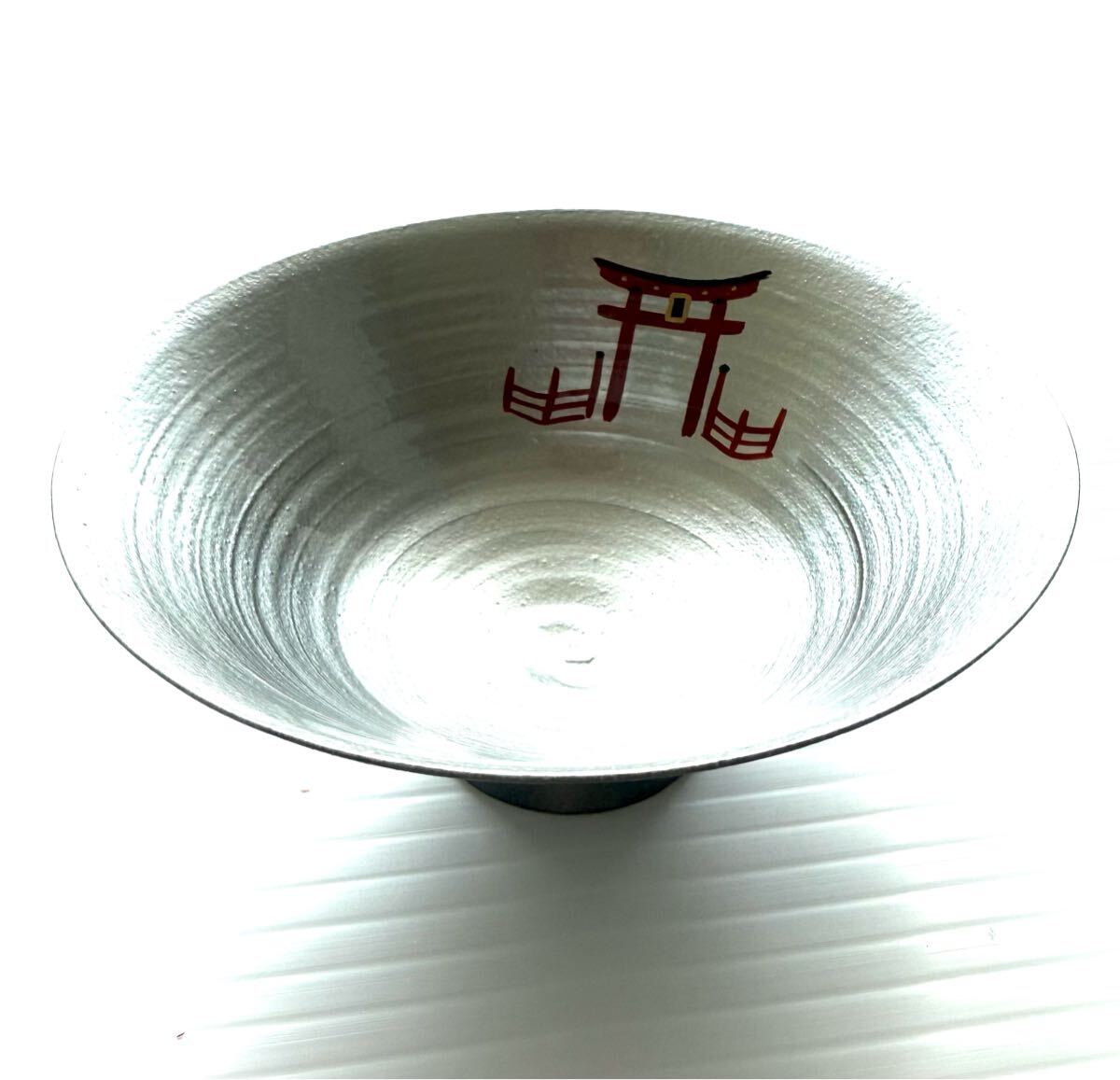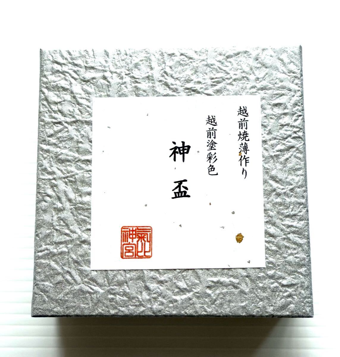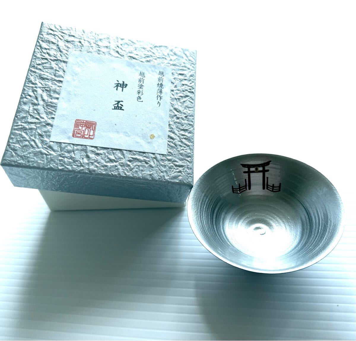 神盃 神具 銀色 氣比神宮 北陸最強 芭蕉 越前焼 陶漆 伝統工芸 竜仙窯 未使用 約8.5cm 鳥居 三大木造大鳥居 重文 盃 百名月 招福 月見 蒔絵