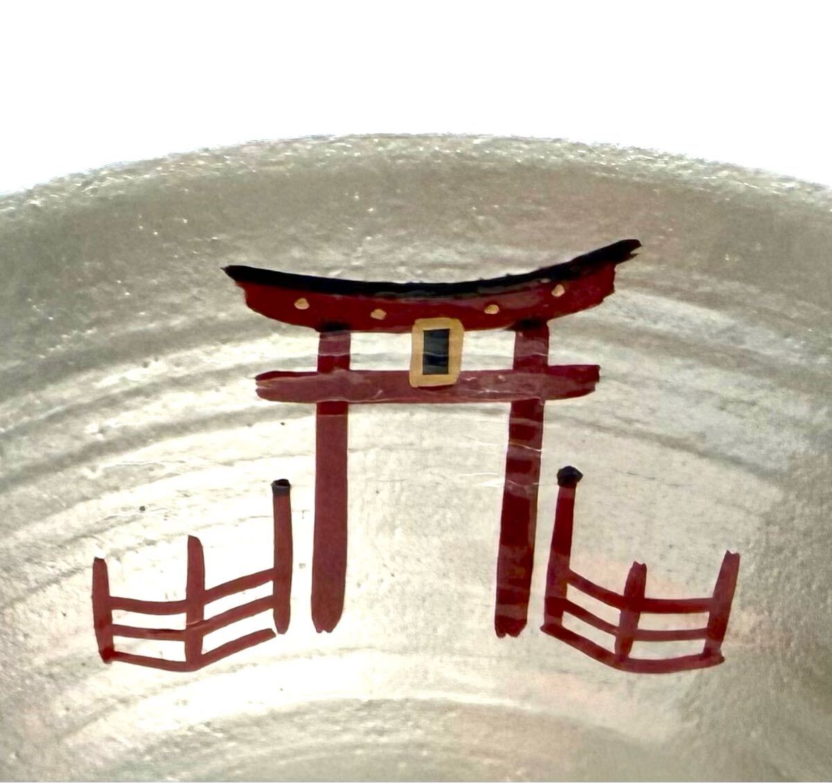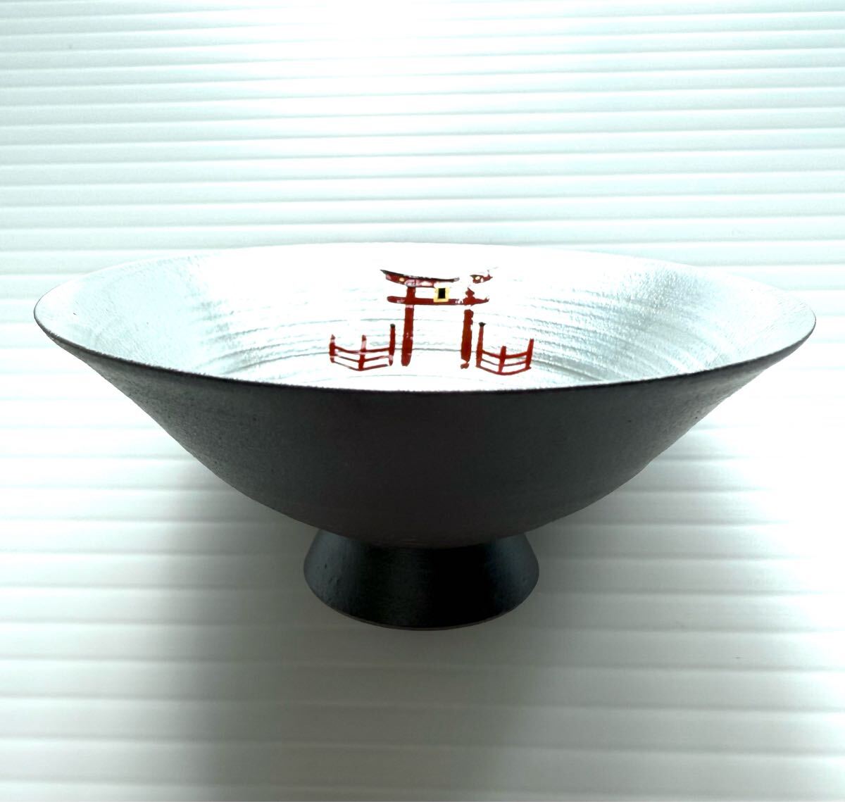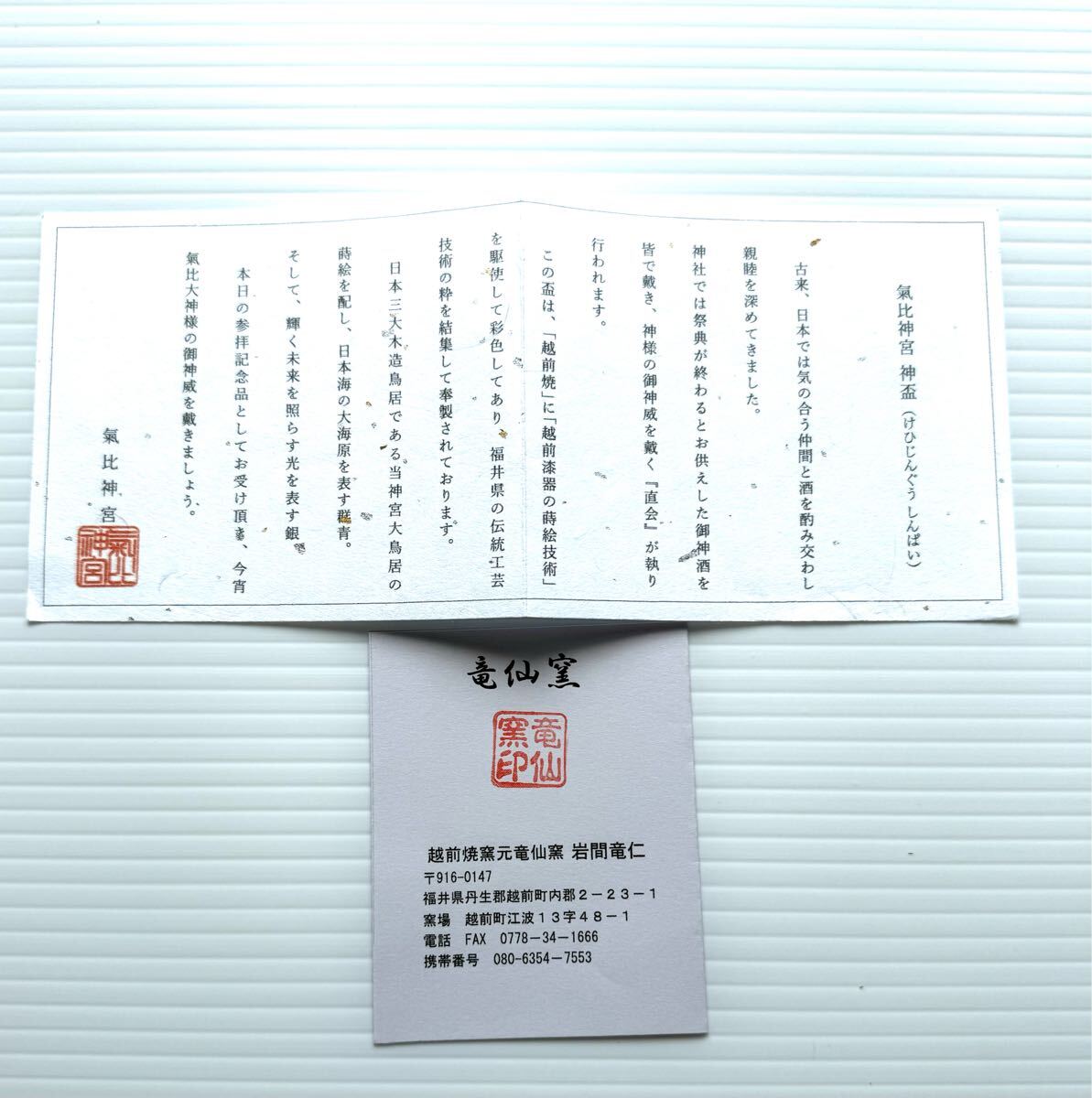 神盃 神具 銀色 氣比神宮 北陸最強 芭蕉 越前焼 陶漆 伝統工芸 竜仙窯 未使用 約8.5cm 鳥居 三大木造大鳥居 重文 盃 百名月 招福 月見 蒔絵