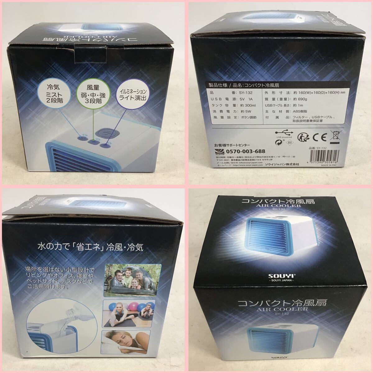 SOUYI コンパクト冷風扇 エアクーラー SY-132 冷気 ミスト 風量3段階 イルミライト USB電源 動作確認済 【中古】