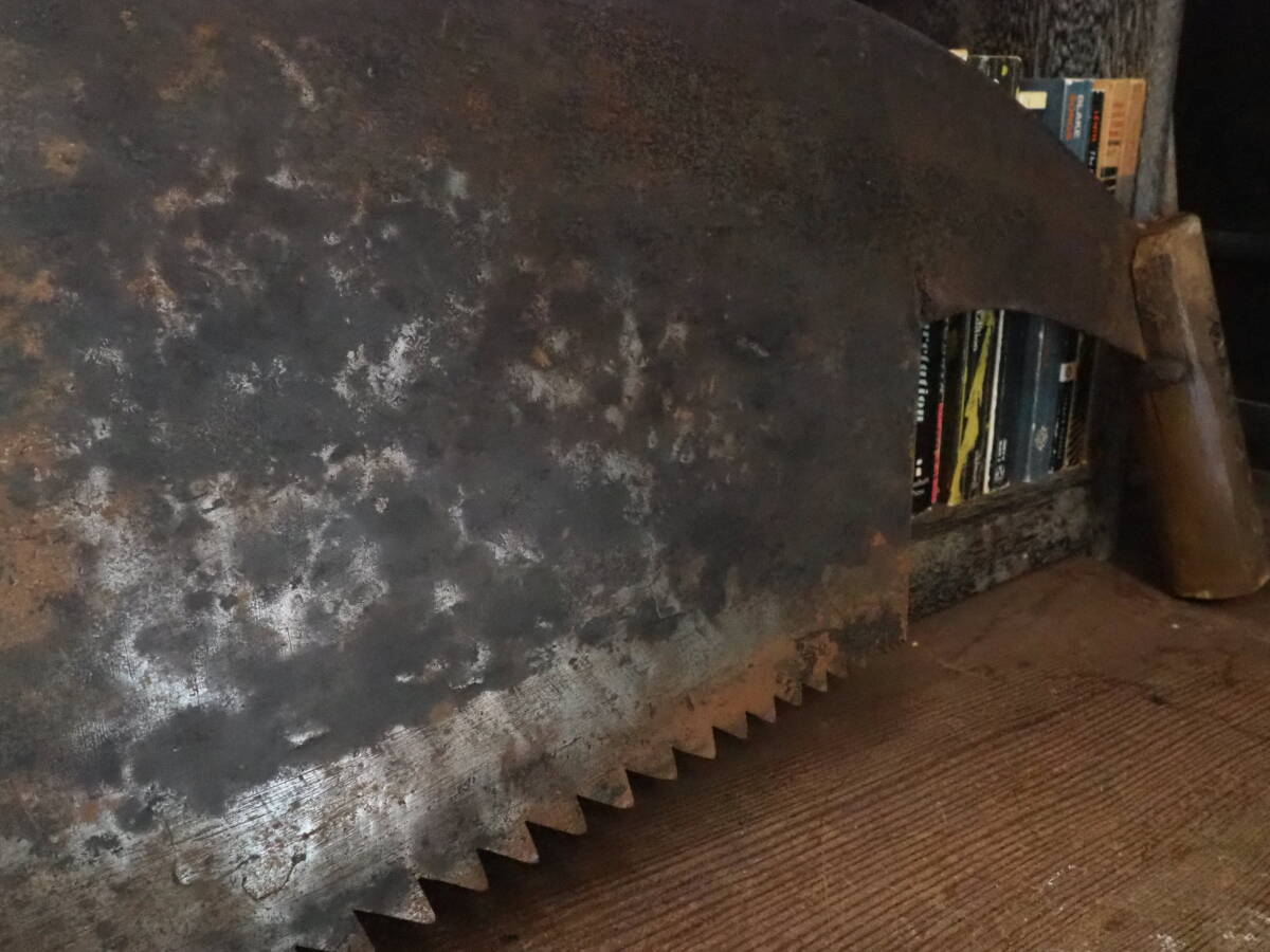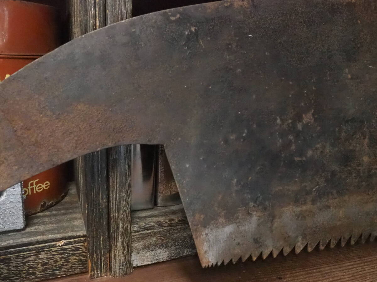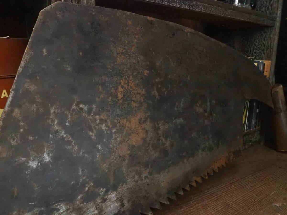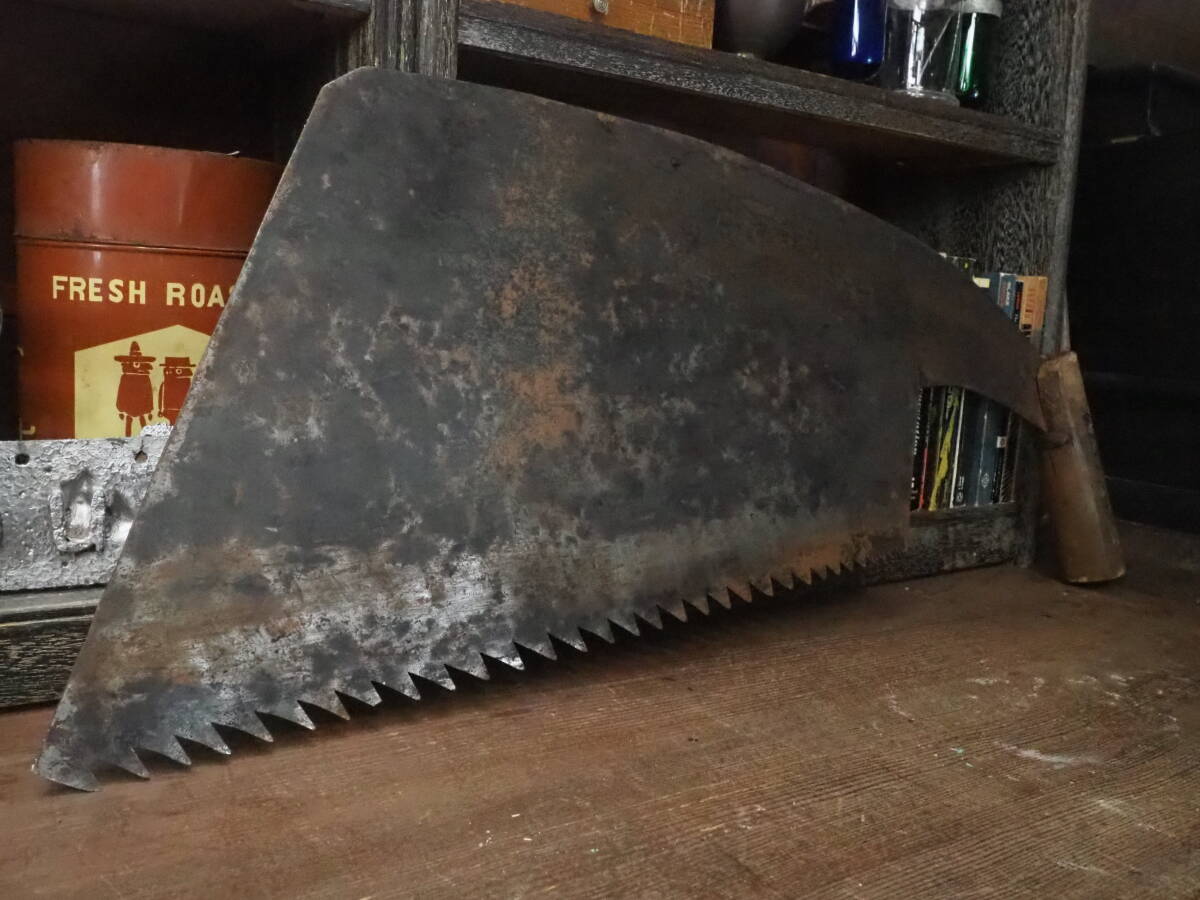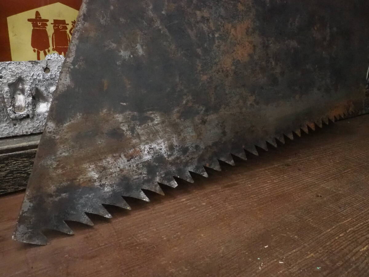 古道具の市で見つけた昭和レトロな巨大ノコギリです。