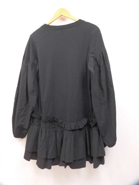 RNA アールエヌエー 切替 Tシャツワンピース プリントTシャツ 裾フリル 長袖 ワンピース ブラック 黒 レディース Mサイズ
