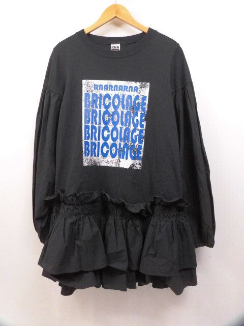 ■ブランド・商品名:RNA アールエヌエー 切替 Tシャツワンピース プリントTシャツ 裾フリル 長袖 ワンピース ブラック 黒 レディース Mサイズ