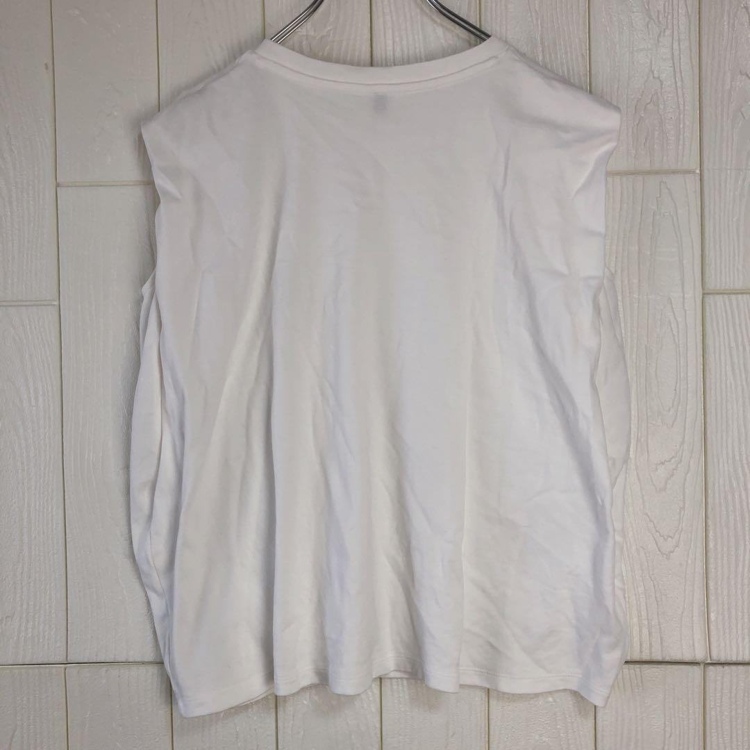シンプルなホワイトのノースリーブトップス、カジュアルなスタイルに最適。