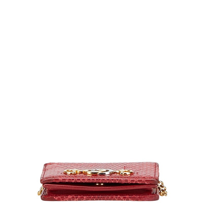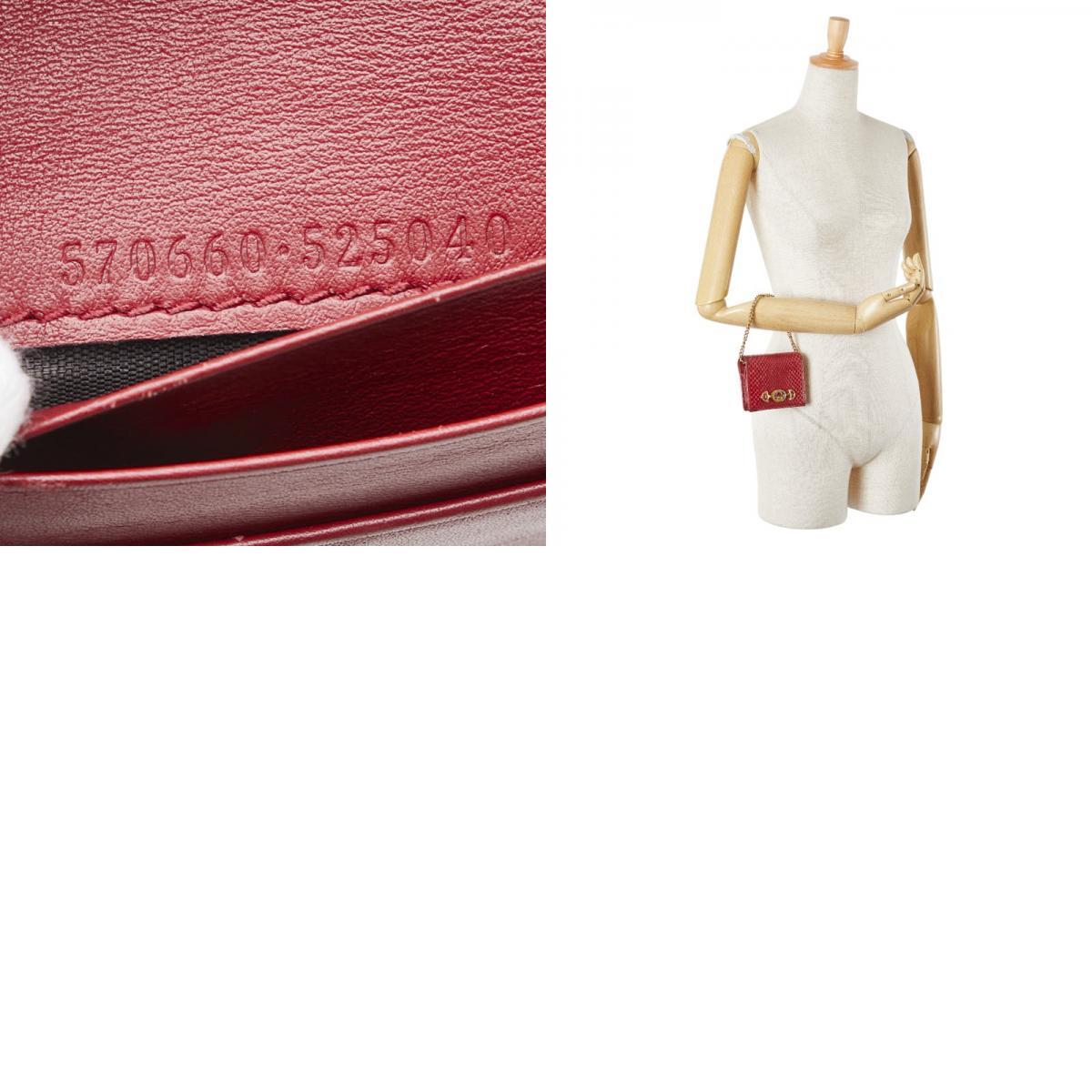 グッチ ズゥミ 二つ折り財布 ミニチェーンウォレット 570660 レッド パイソン レザー レディース GUCCI 【中古】