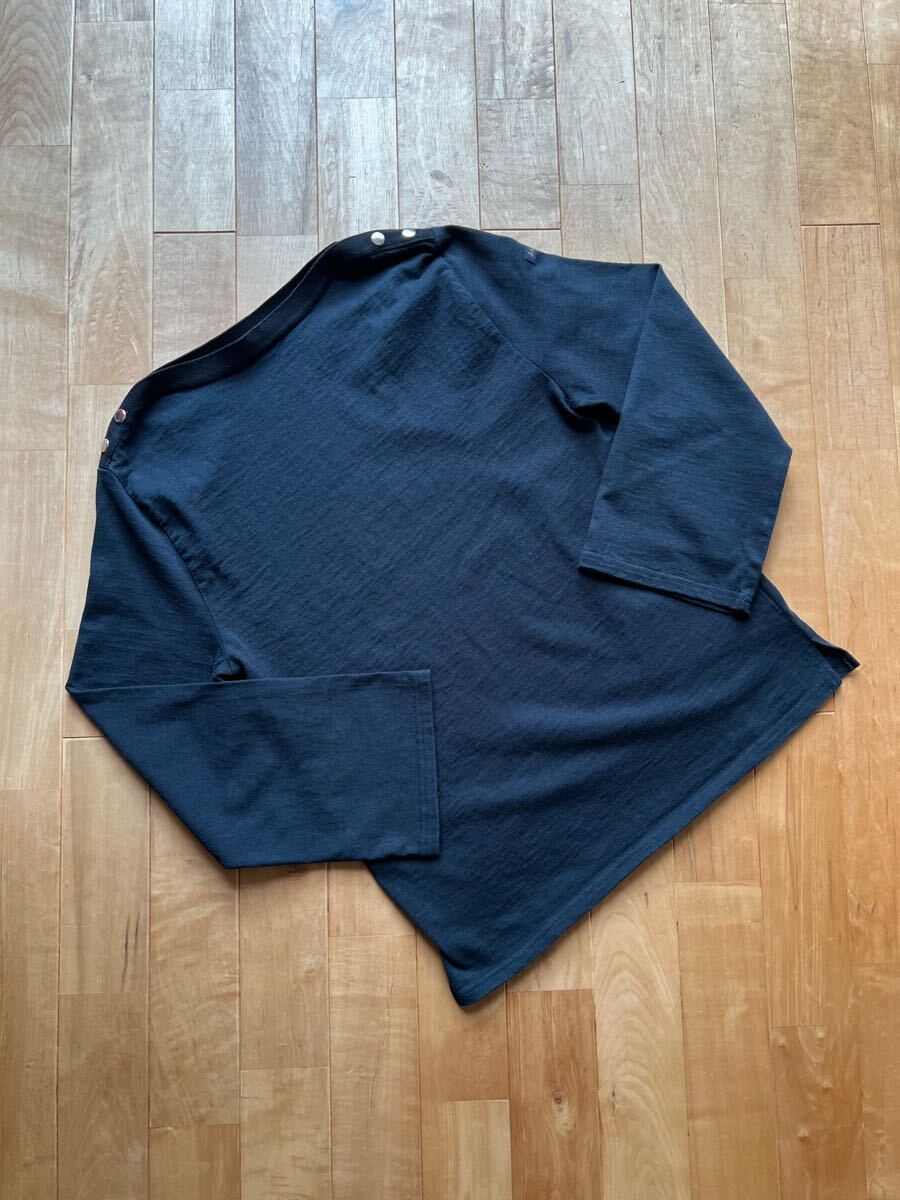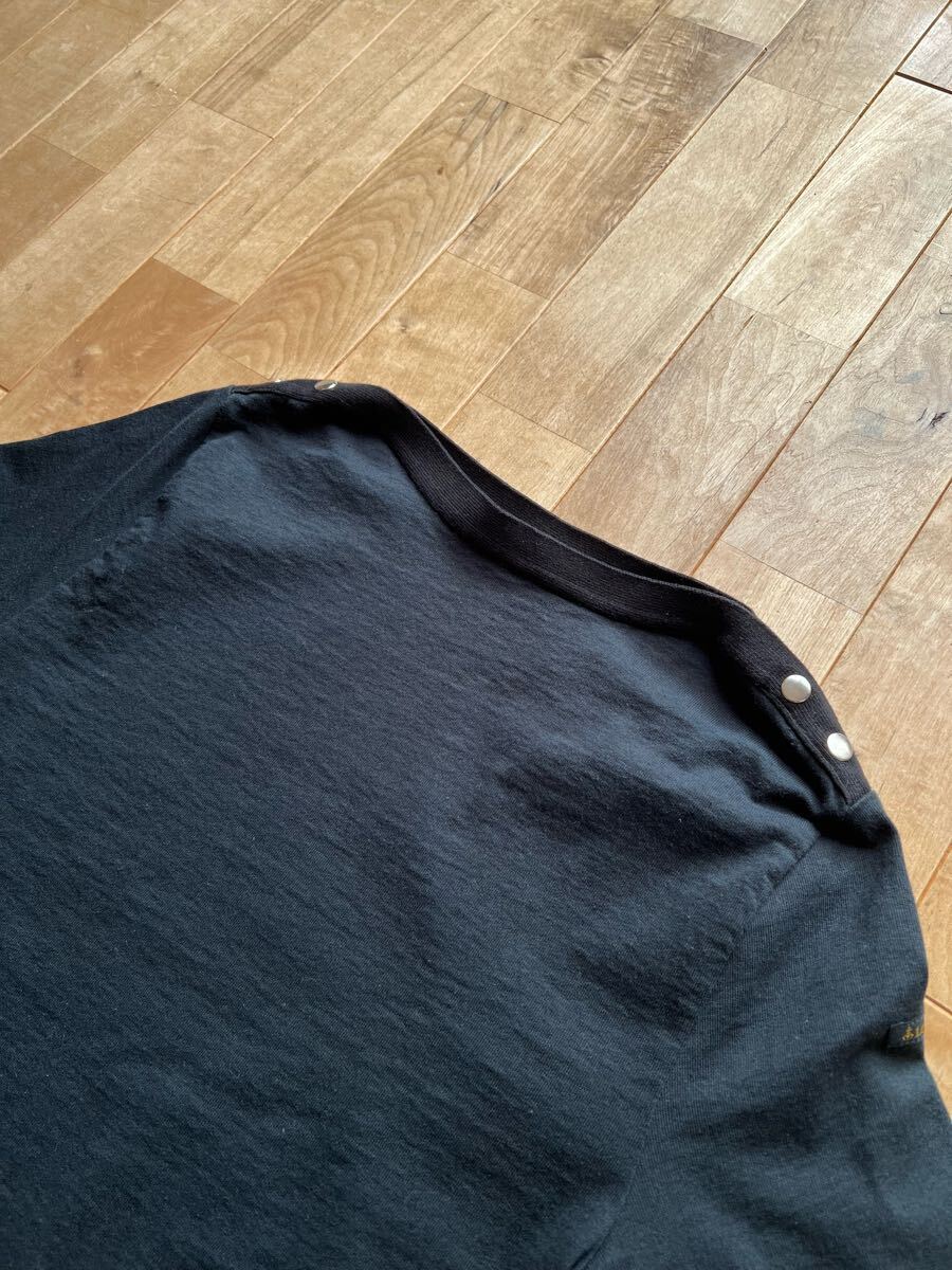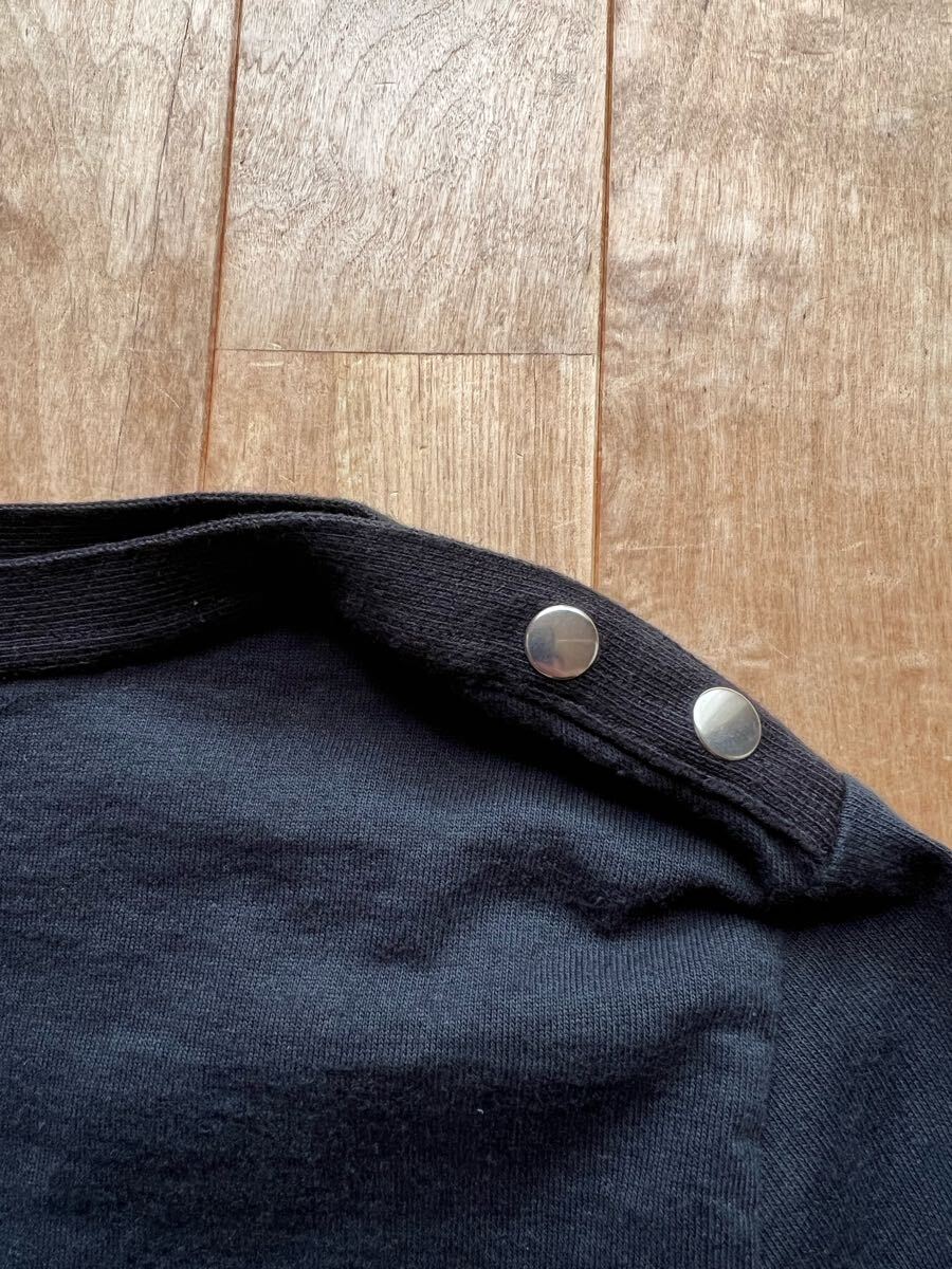 珍しい「Le minor(ルミノア)」のショルダーボタンバスクシャツになります。