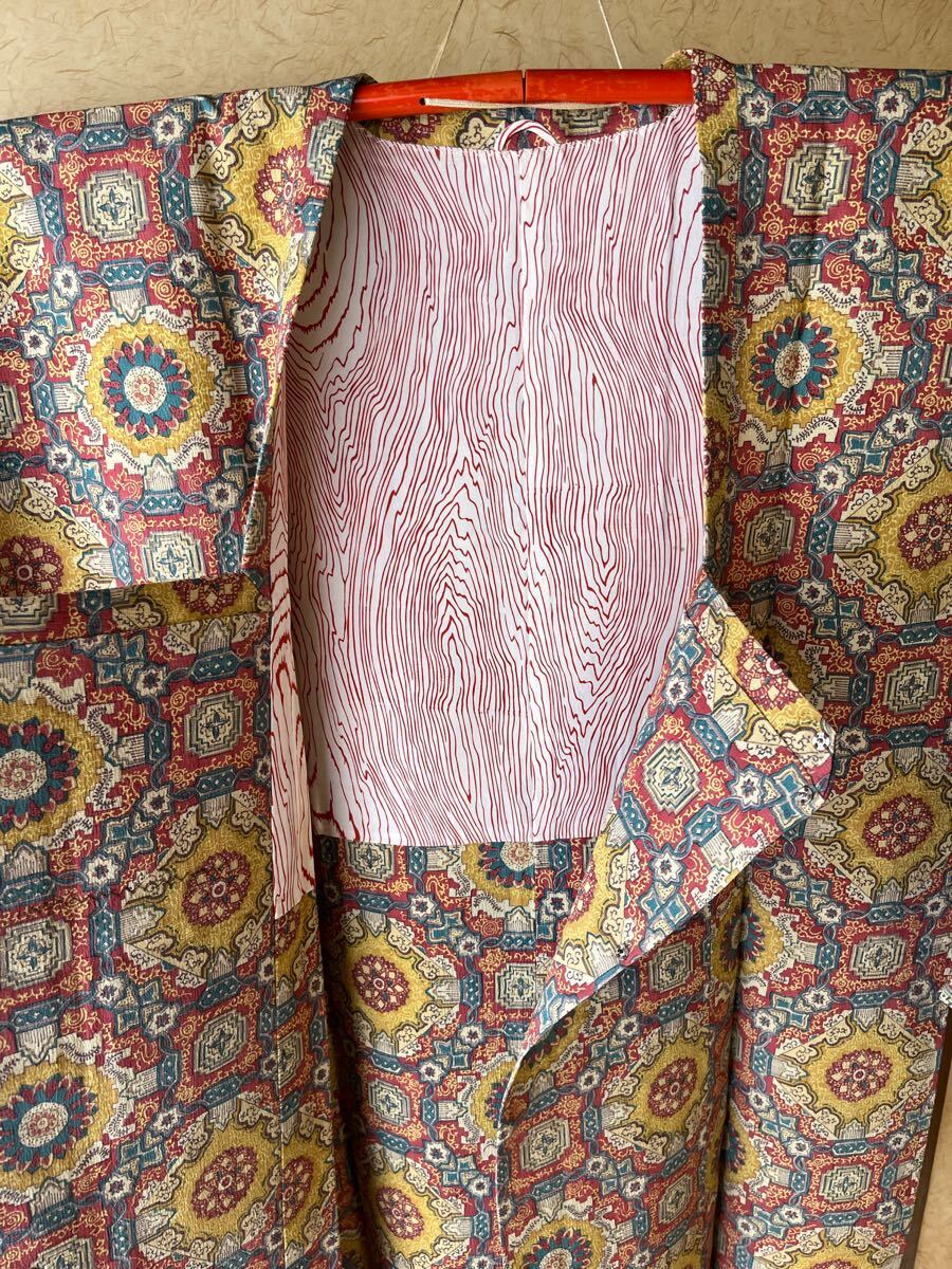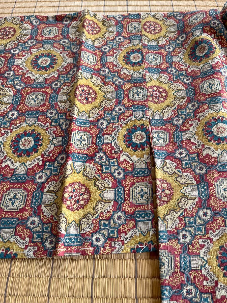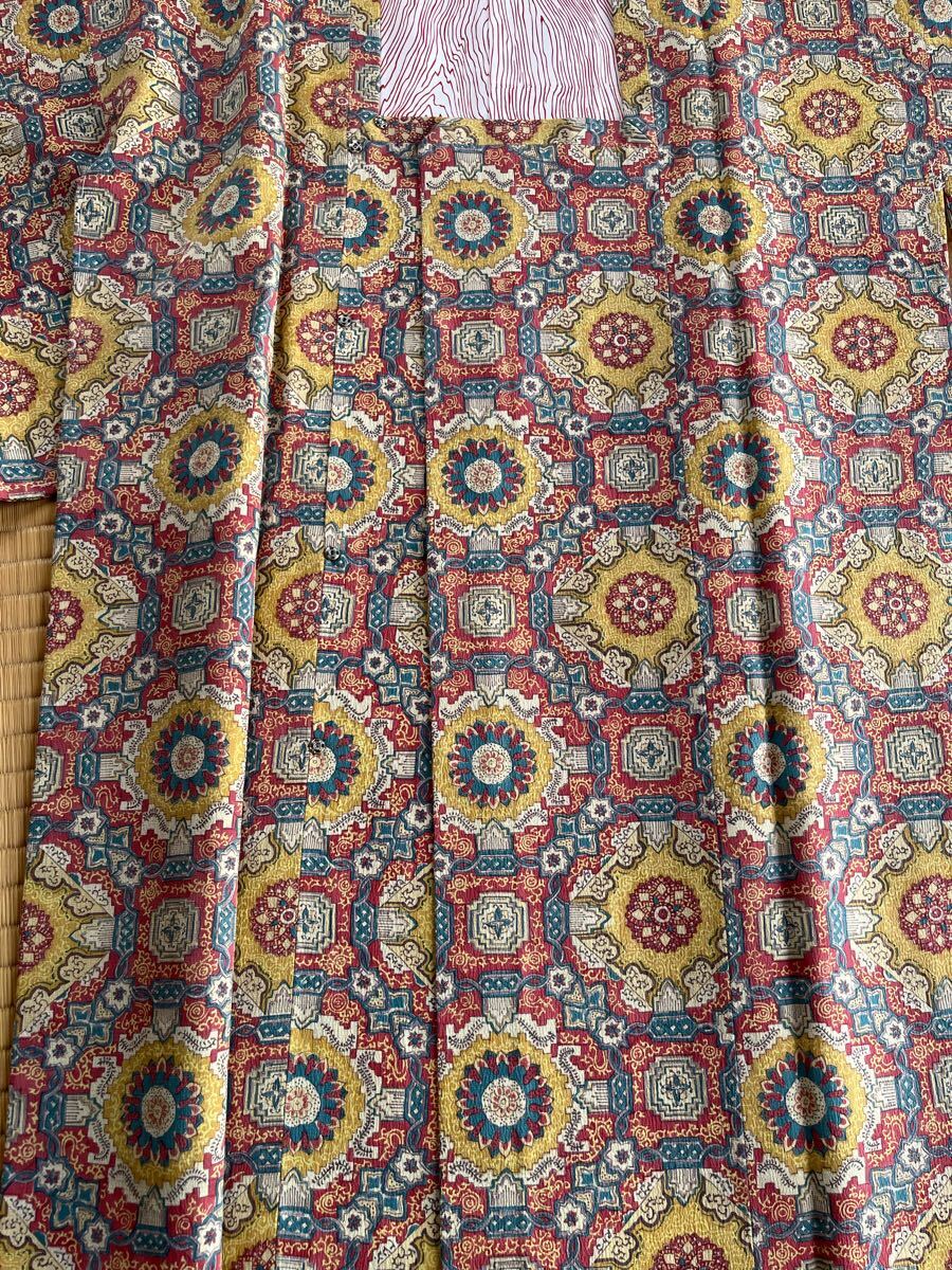カラフルな色の幾何学模様の道行コートです。