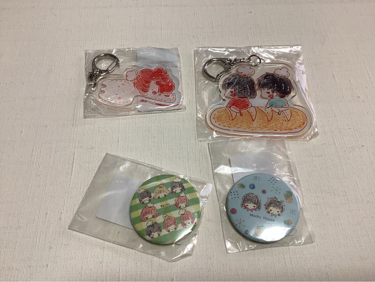 ●缶バッジ2点とアクリルキーホルダー2点の計4点セットになります。