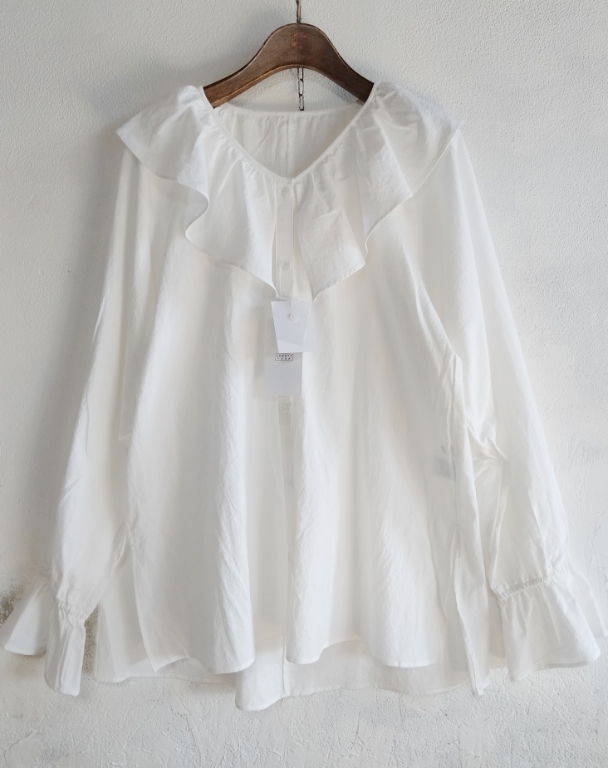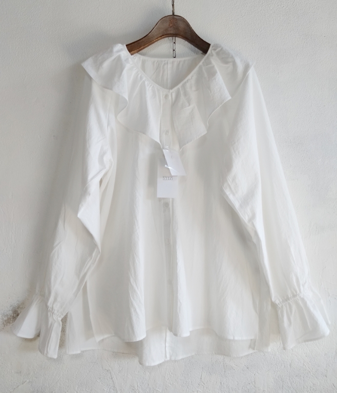 Vネックの大きめフリル襟が可愛いゆったりブラウスです。