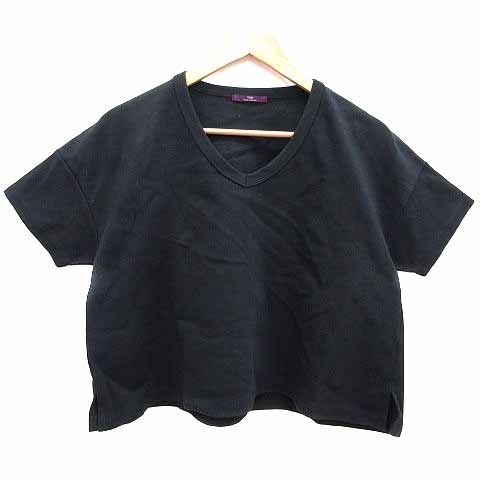 アーバンリサーチ URBAN RESEARCH ITEMS Tシャツ カットソー Vネック ショート丈 半袖 Free 黒 ブラック /YK レディース