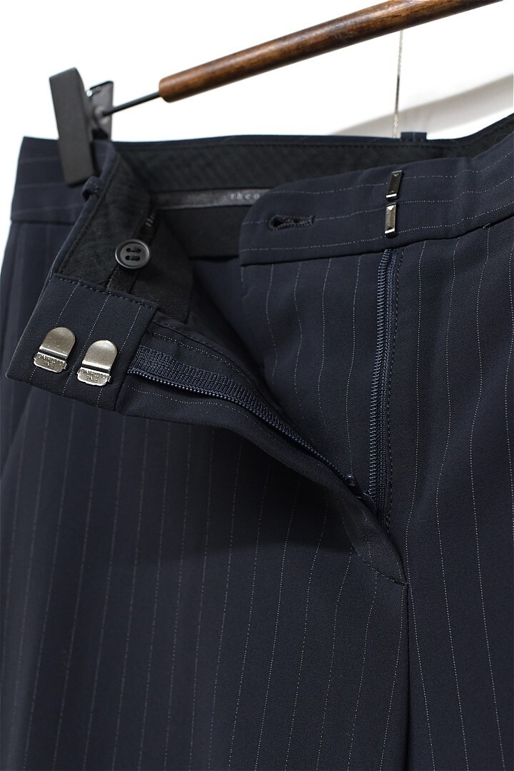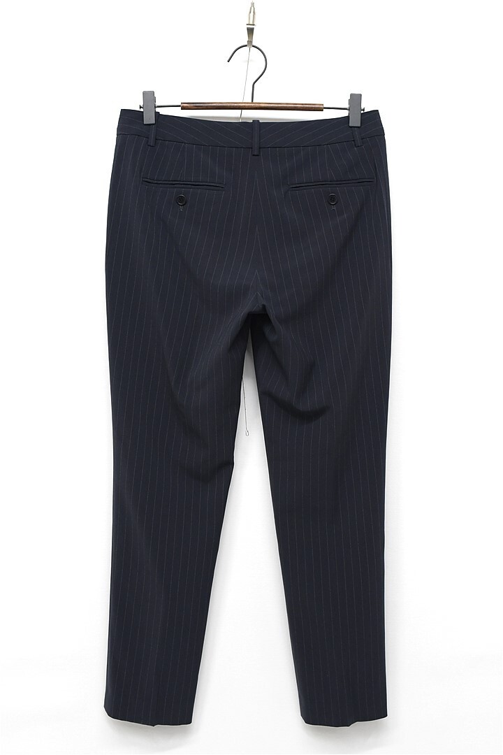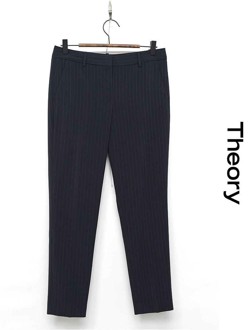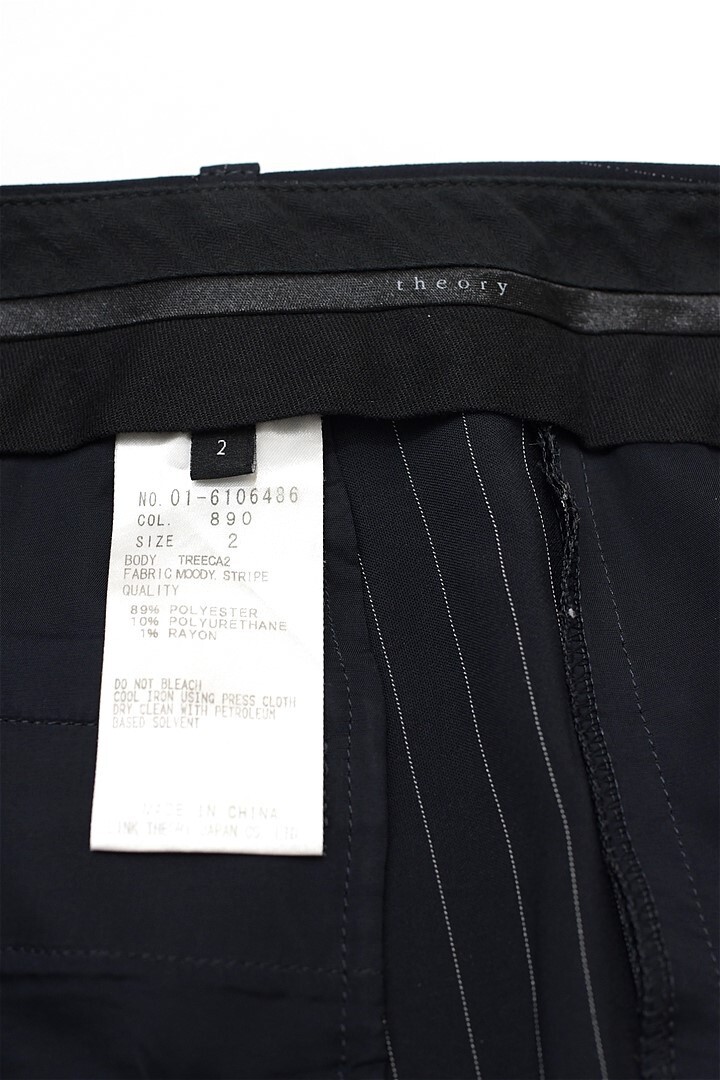 D524/美品 theory テーパードパンツ スラックス ストライプ ノータック 裾シングル 2 M 紺/TREECA2/MOODY STRIPE