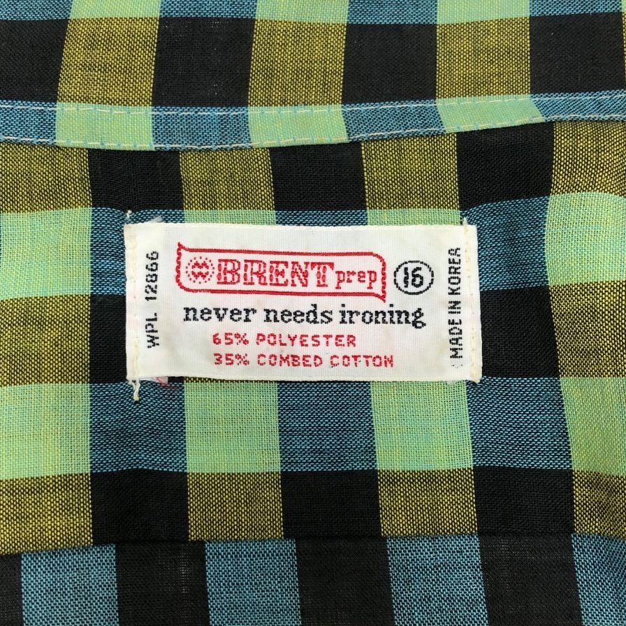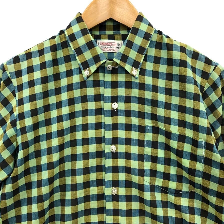 美品◆シャツ ブレント 60S 長袖シャツ ヴィンテージ 吹き出しタグ チェック グリーン系 メンズ サイズ16 brent 【AFB50】