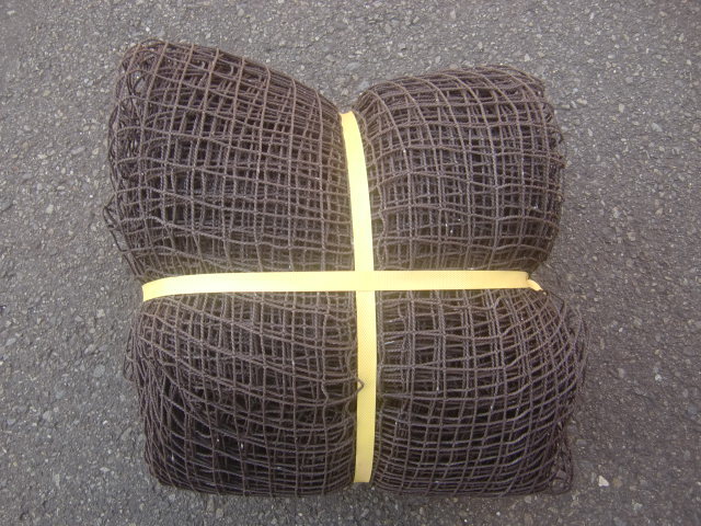 ゴルフ練習場で使われていたネットです。サイズは、約4,8m×4,6mです。網目の大きさは、2.5cm四方です。目立ちませんがペンキのついてしまっている箇所がございますので、割安とさせていただきます。程度は良いと思います。野球やゴルフ、サッカーの練習などにいかがですか。なお送料は全国600円で送らせていただきます。他のネットとの同梱も可能です。(沖縄,離島は別途ご負担いただきます。)