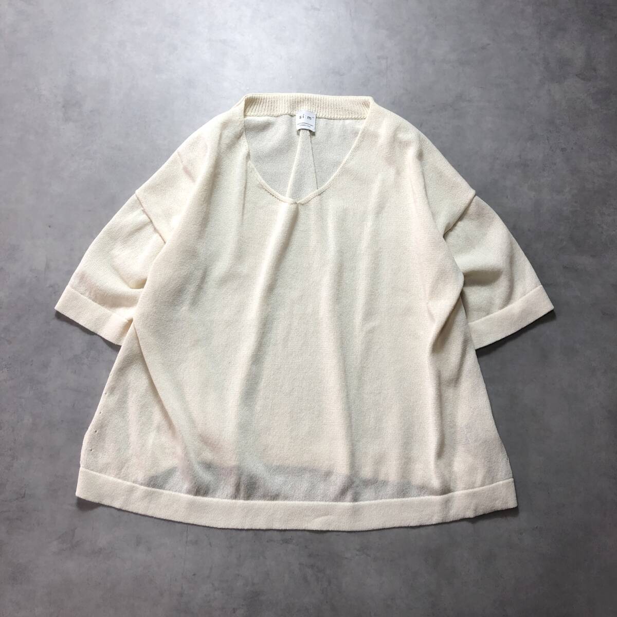 WQ279●Si:m:Vネックサマーニット●38●生成り Tシャツ 日本製 スィーム