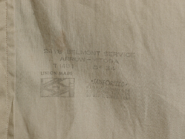 ARROW の ワークシャツ です。 1851年設立のアメリカの老舗メーカー 古着好きにはお馴染みのブランドだと思います。 フロント裾にユニオンチケットのスタンプが付く MADE IN USA (アメリカ製 ユニオンメイド) 素材は、ALL COTTON ( 100% コットン ) 軽くて張りのあるコットンポプリン素材 使い勝手の良い、比較的薄手の 幅広い季節に着て頂ける素材が使用されています。 もちろん、ヴィンテージARROWの商品ですので 上質な素材が使用されています。 6ボタンフロント、 両胸にフラップ付きポケット サイドスリットにマチ付き 合わせやすい、ベージュ お探しの方も多いシンプルな無地デザイン 一枚で様になる ヴィンテージのかっこいい商品です。 |