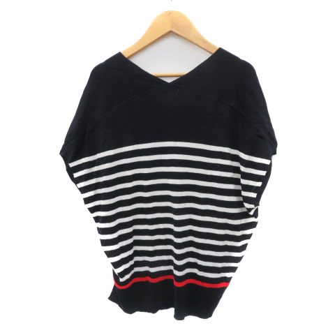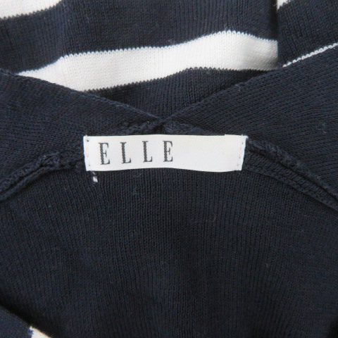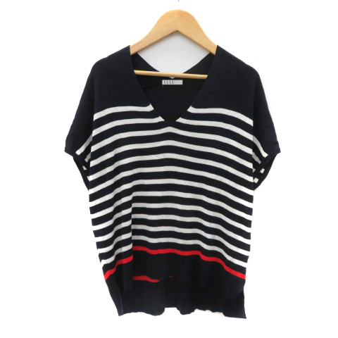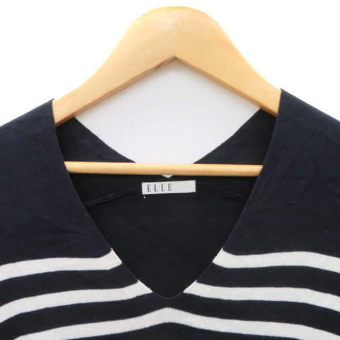 エル ELLE ニット カットソー 半袖 Vネック ボーダー柄 38 M マルチカラー 紺 ネイビー /YK21 レディース
