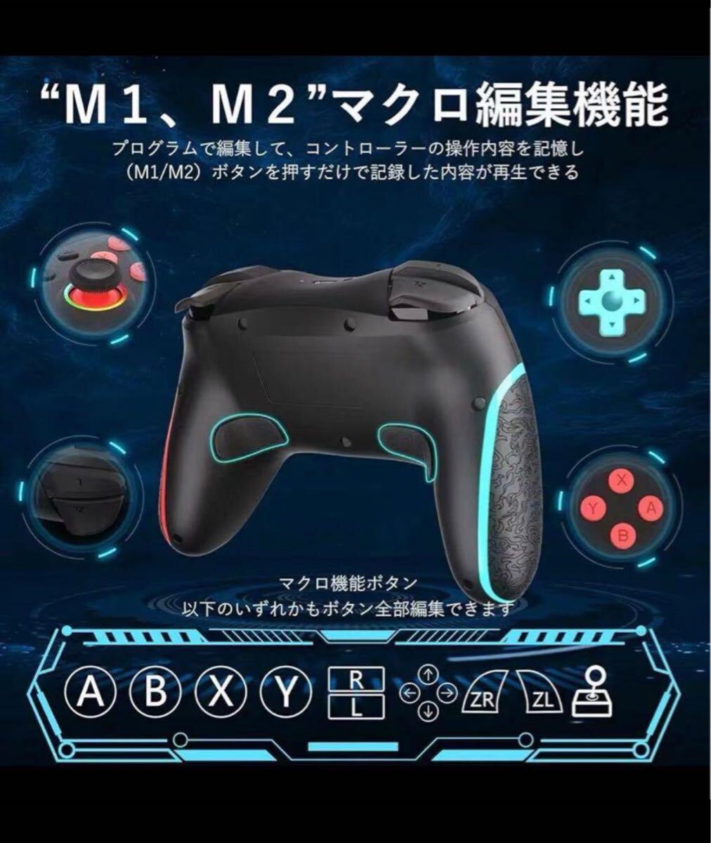 Switch コントローラー【2024祥雲新型】背面ボタン付き マクロ機能 スイッチ コントローラー 9色変換LEDライト switch プロコン TURBO連射機能 無線 Bluetooth 1000mAh大容量バッテリー 6軸ジャイロセンサー搭載 HD振動 本体スリープ解除 Switch/Switch Lite/Switch 有機EL/Windows/Android/IOSに対応 日本語取扱説明書付き (ブルー赤)