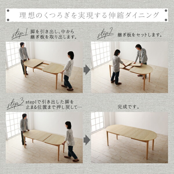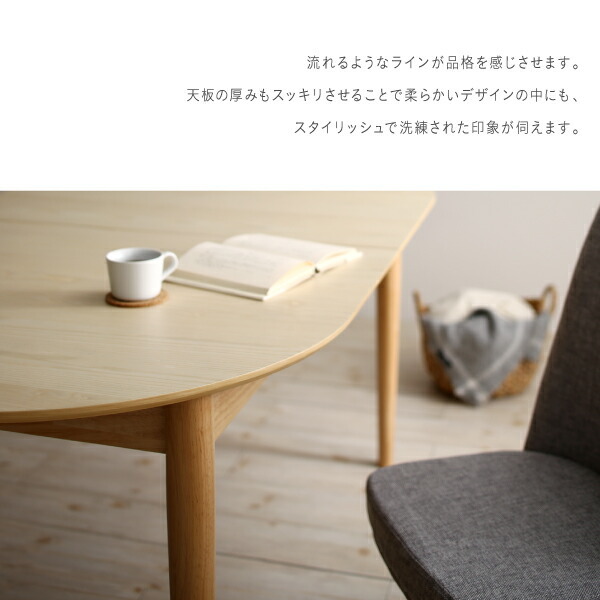 天然木アッシュ材 伸縮式オーバルダイニング 6人 7点セット(テーブル+チェア6脚) W160-210