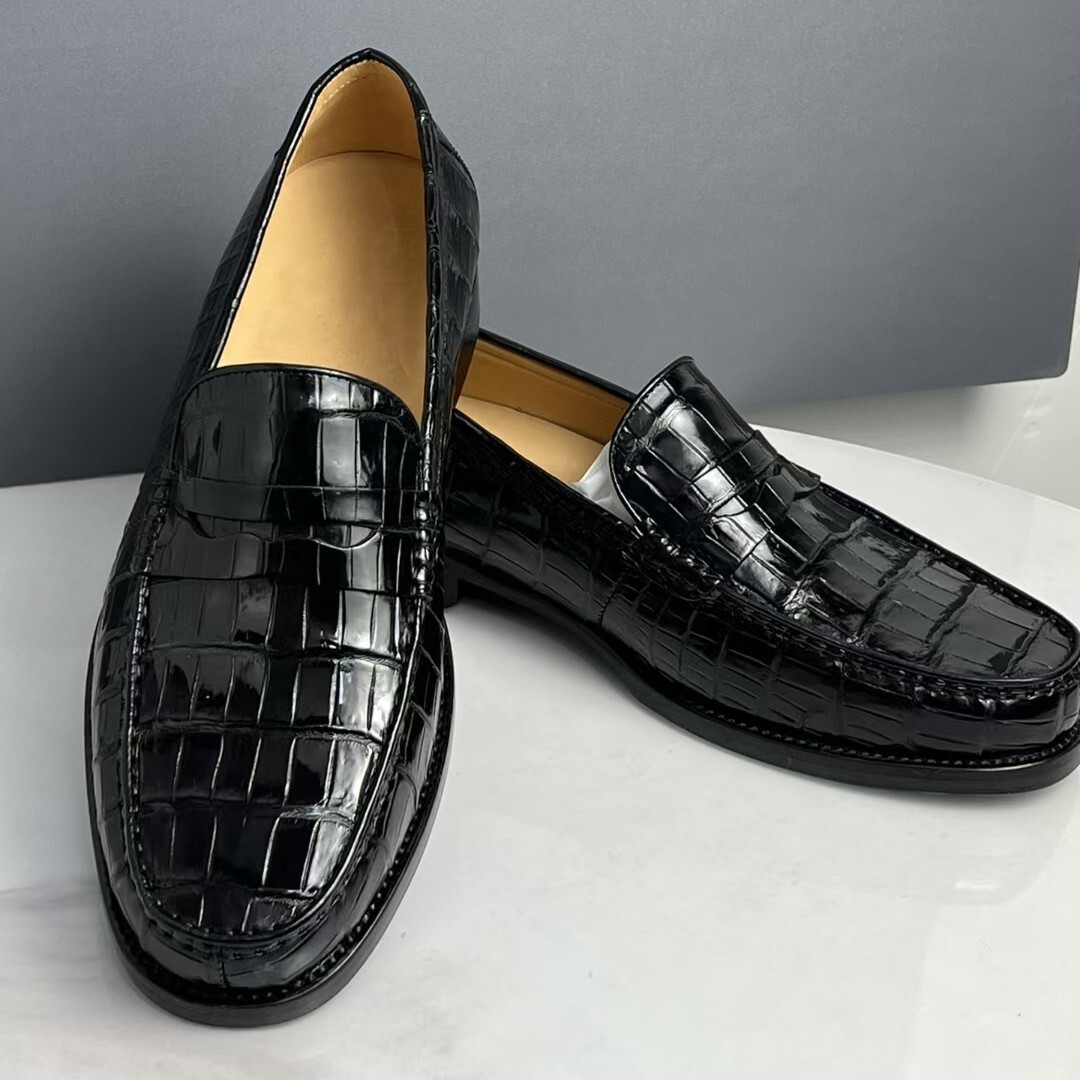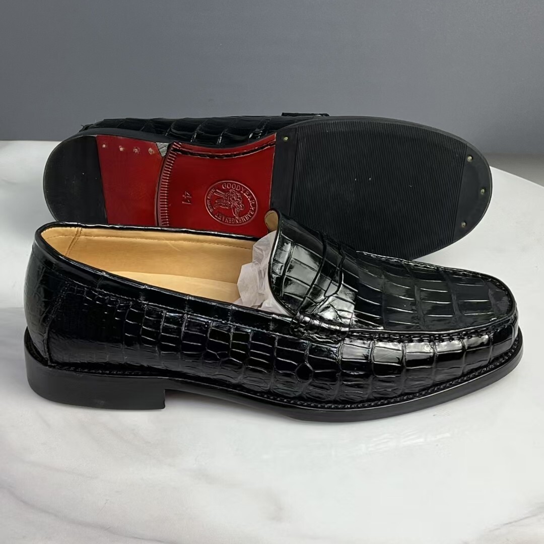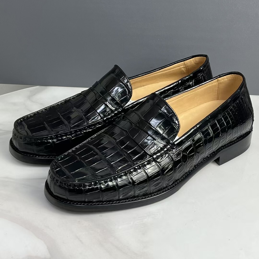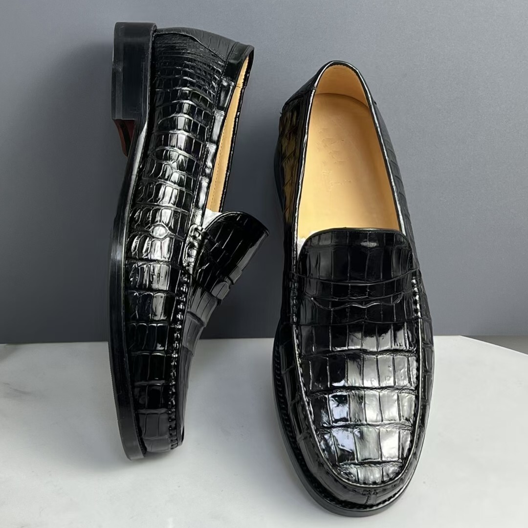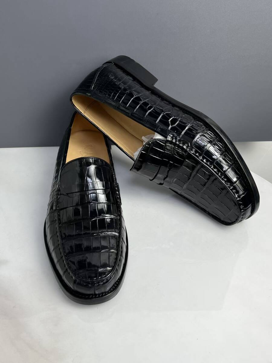 耐久性 ワニ革本物 モカシン ローファー グッドイヤー製法 クロコダイルレザー 本革 腹革 24.-0-27.0 スリッポン メンズシューズ 快適 革底