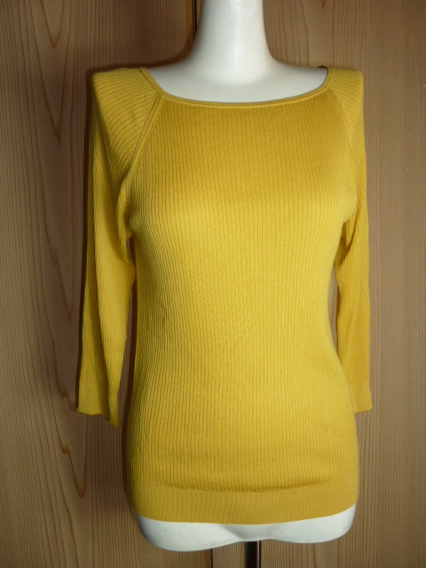 A'54★美品★ PLAST (プラステ) ・サイズM【七分~八分袖丈・薄手ニットカットソー(9800円】マスタード色★