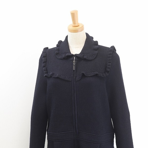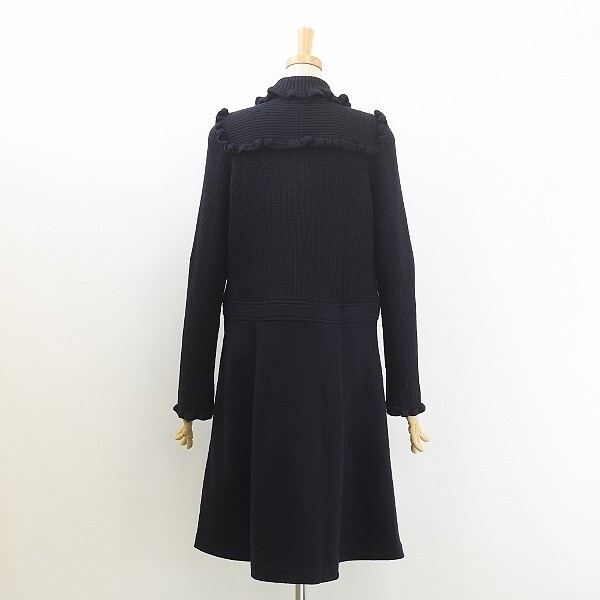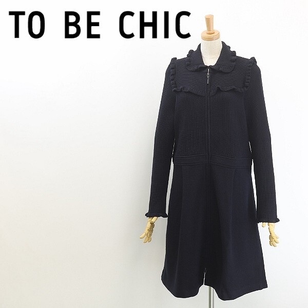 新品◆TO BE CHIC トゥービーシック フリル ウール ニット 切替 Wジップ ワンピース コート 紺 ネイビー 44 大きいサイズ | |