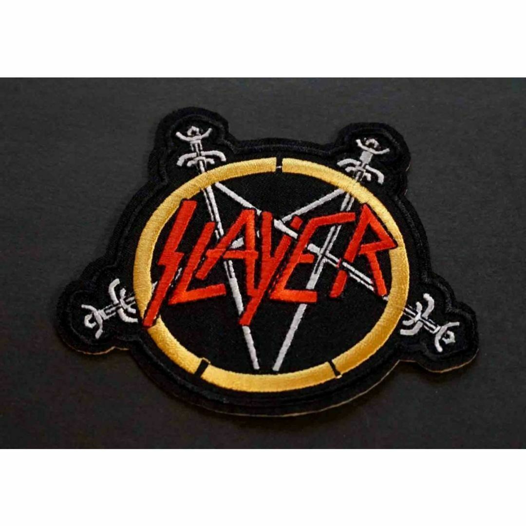 長剣星SLAYER黒黄赤◆激渋 スレイヤーSLAYER アメリカ スラッシュメタル・バンド刺繍ワッペン◆ 音楽ミュージック◇サバゲー・ミリタリー
