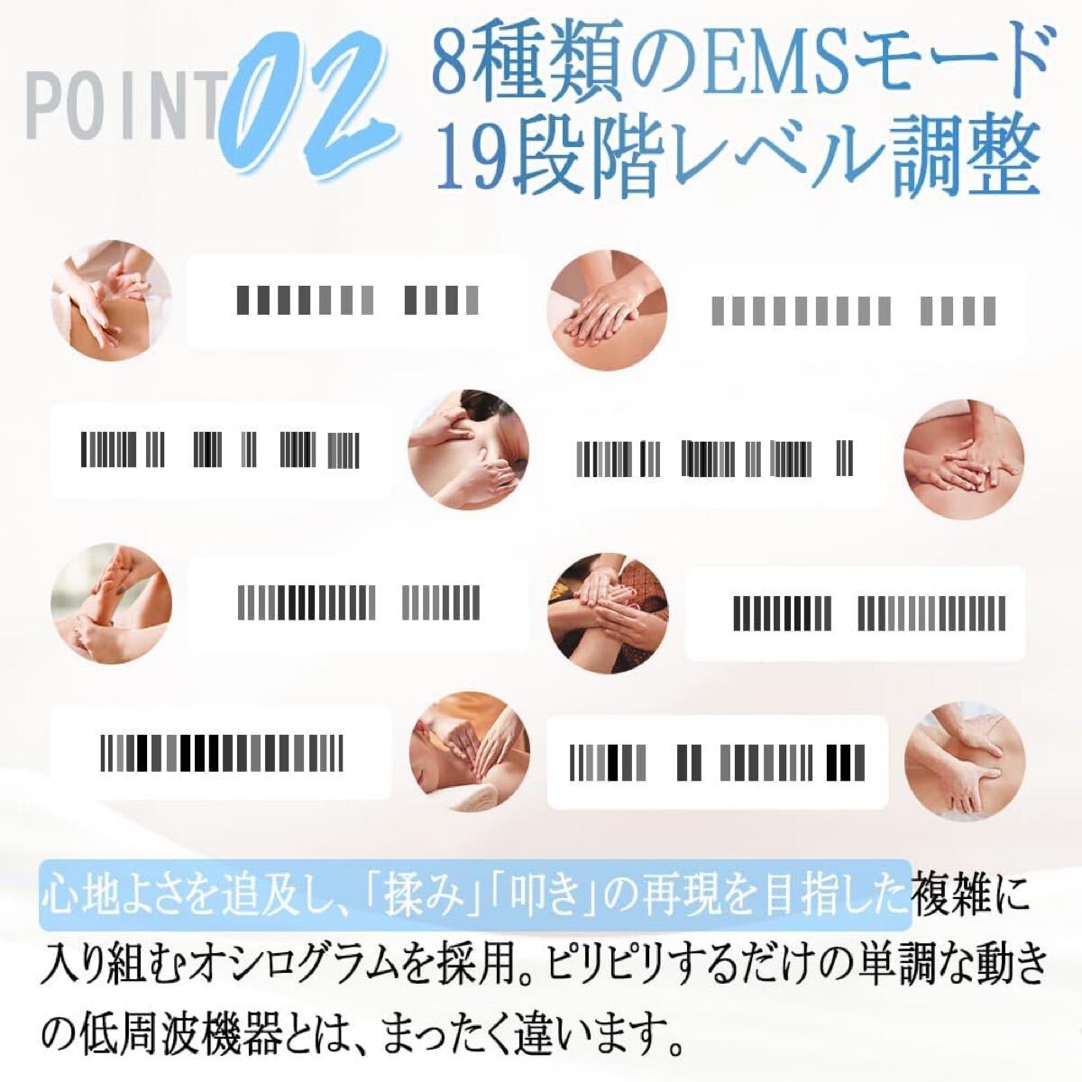 左右の足を乗せると足裏から通電し、ふくらはぎまでアプローチ。簡単な動きでも、筋肉をしっかり動かせます。心地よさ追求し、「叩き」「カッサ」などの再現を目指した複雑に入り込むオシログラムを採用。ピリピリするだけの単調な動きの低周波とは、まったく違います。