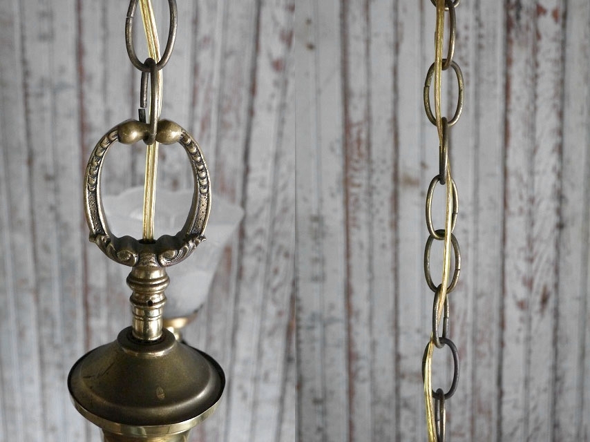 商品説明 岡山STAGEより出品します。アメリカで買い付けたアンティークの吊り下げランプです。経年によるメタルとカスリガラスシェードの風合いがアンティークならではの趣があります。灯りをともすと雰囲気良く空間を演出し、消灯時にも存在感がありますのでインテリアのアクセントにお勧めです。電球は付属しませんが市販のE26mm口径の一般的なタイプですのでご用意ください。状態ですが、金属劣化や錆、小傷や擦れ、汚れ、くすみ、ガラスシェードの上下の縁部分や表面に細かい欠け、全体的に歪み等はございますが雰囲気を損なうようなダメージはなくアンティークならではの良い状態かと思います。あくまでアンティークになりますのでご理解いただける方のご購入をよろしくお願い致します。 サイズ 高さ約38.5cm、直径約53cm(シェード含む)シェード高さ約10.5cm、シェード直径約12.5cmです。 予定発送方法 保障の利く佐川急便の元払い170cmサイズ料金で行います。 コメント コンセント式ですので別途735円でシーリング式への交換と長さ調節もいたしますのでお気軽にご相談ください。店頭でも販売しております。タッチの差で売り切れた場合はご了承ください。よろしくお願い致します。(現状チェーンは約80cmです。切り縮めは無料、延長の場合は要相談)■落札後の連絡及びご質問の返答は基本的に午前10時~午後6時までとさせて頂きます。毎週水、木曜日、年末年始や時間外でのご連絡は休み明け及び翌日のご連絡となりますので予めご了承下さい。 STAGEホームページ https://stage-stage.ocnk.net// |