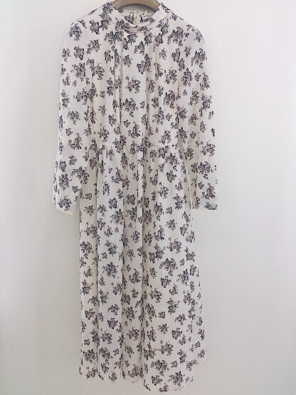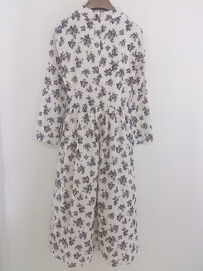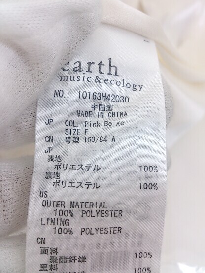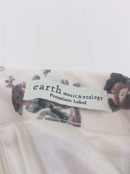◇ earth music&ecology 花柄 長袖 膝下丈 ワンピース サイズF ピンクベージュ レディース