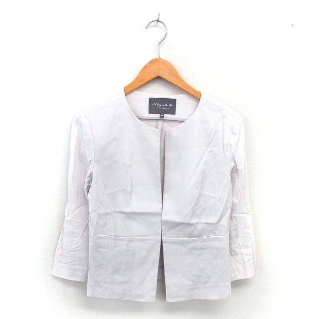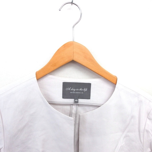 ユナイテッドアローズ A DAY IN THE LIFE UNITED ARROWS ノーカラー ジャケット リネン 薄手 長袖 40 オフホワイト 白 /TT レディース