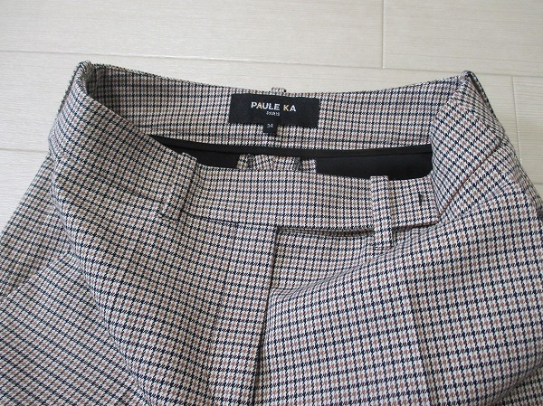 ポールカ*PAULE KA 千鳥チェックコットンパンツ 34 小さいサイズ 裾ダブル