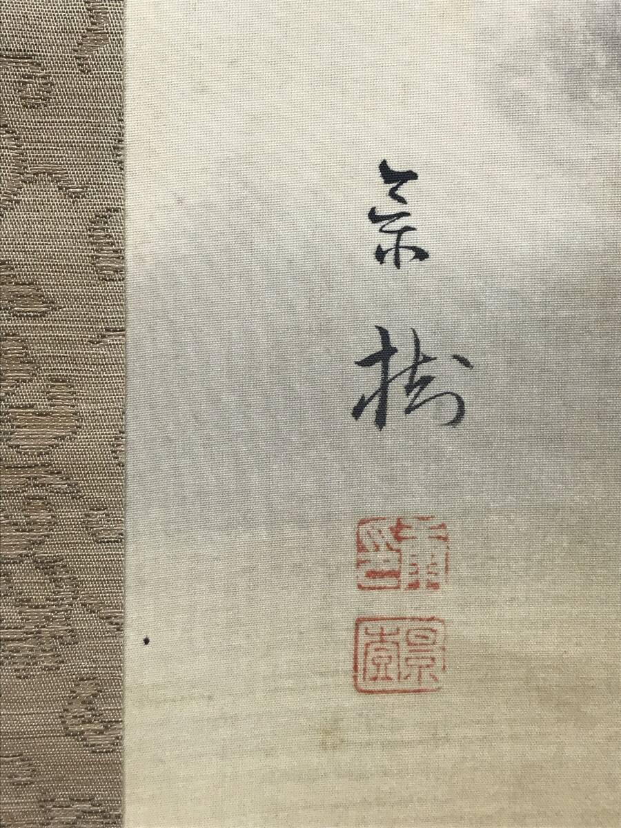 【作品状態】 本紙は絹本肉筆です。本紙は薄汚れ、全体に汚れシミ、糊シミあります。表装は天地に薄汚れあります。