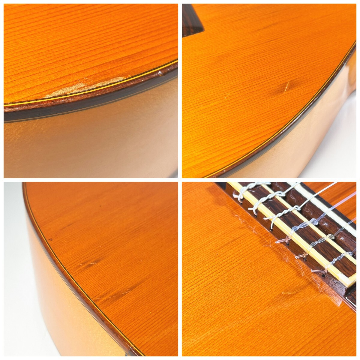 | ●中古品の為細かなスレ傷などございます。 ●ボディトップの端に塗装剥がれがございますが、木部の割れや、ブリッジの浮きはございません。 ●4,5,6弦のサドルに割れがございます(ビビり、音詰まり等はなく演奏に支障はございません(掲載写真参照) |