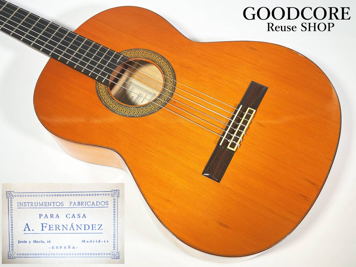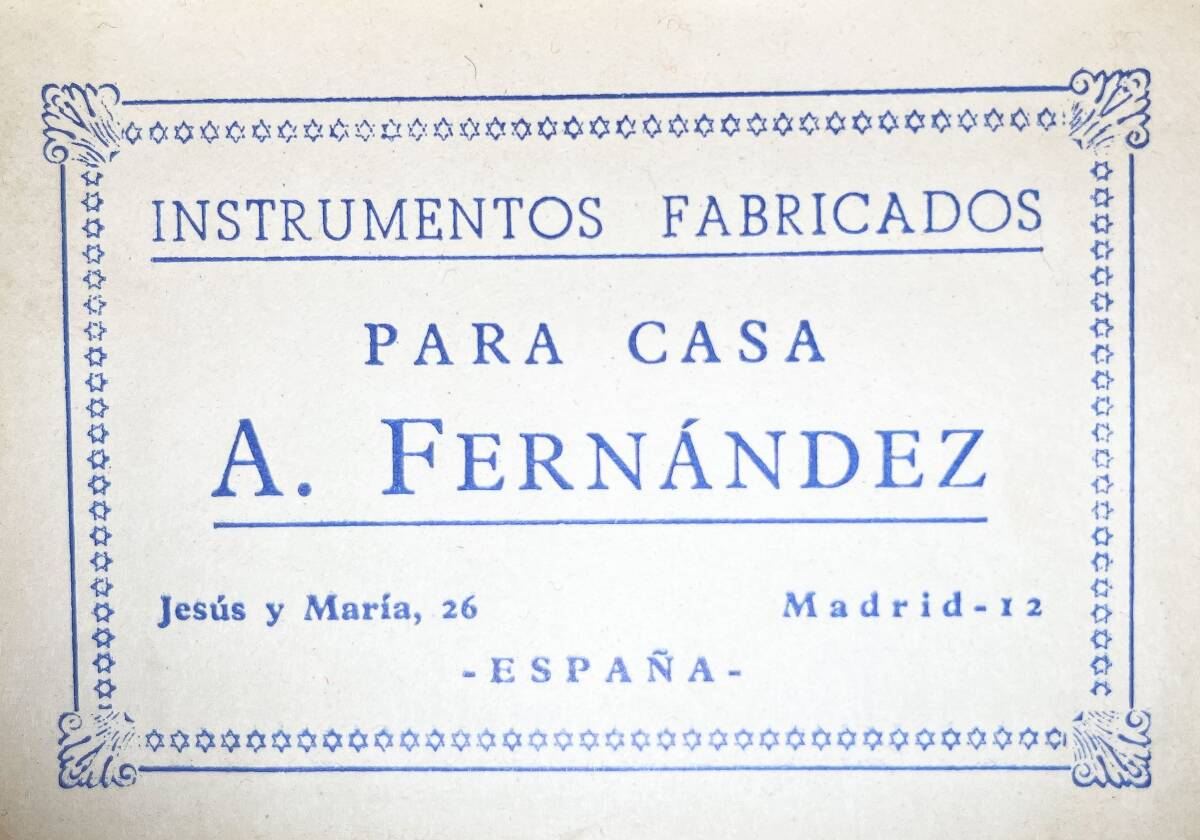 | スペイン最高峰のギター製作家の一人である、アルカンへル・フェルナンデスの許可のもと製作された『PARA CASA A.FERNANDEZ』ラベルのクラシックギターが入荷致しました! ボディトップはスプルース単板、サイド&バックは合板ですが木目、色合いからシープレスと思われます! シープレスは本来フラメンコギターのサイド&バック材として用いられることが多いようですが、トップにゴルぺ板が張られていないため、クラシックギターとして出品させていただいております。 |