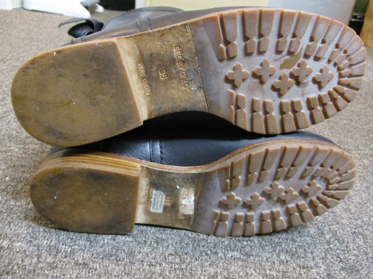 シーバイクロエのロングブーツです。 中古のブーツですのでそれなりに使用感はあります。 付属品は保存袋になります。 お色目はブラックになります。 ご不明な点はご質問の上、画像をよくご覧の上NC/NRでお願い致します。 |