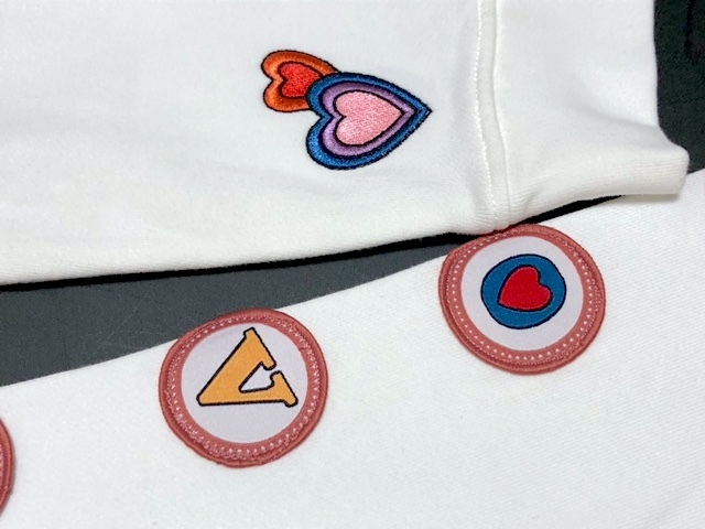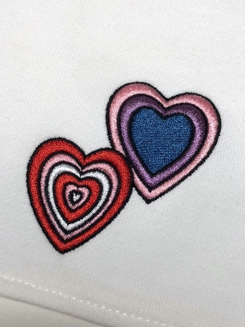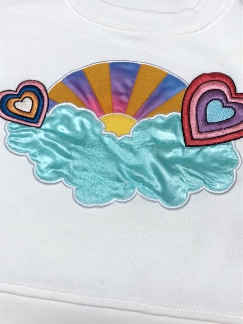 胸元に昇る太陽とハート刺繍デザインが目を惹く